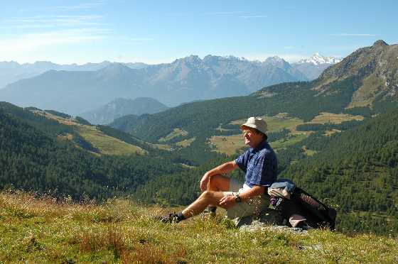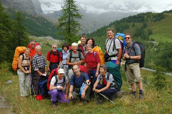 Während der letzten Jahre ist unsere Gruppe durch die Ossola-Täler und weiter um die Mont Rosa-Südseite gewandert. Der krönende Abschluss der Wanderung vor drei Jahren war die Überschreitung des 3,300 m hohen, vergletscherten Theodul-Passes. Dieses Jahr wollten wir den Pass noch einmal in umgekehrter Richtung überqueren und unsere Wanderung auf den Alta Via Uno bis zum Grand St. Bernard und zum Val Ferret fortsetzen. Aber die Wetterprognose für das geplante Wochenende hatte sich im Laufe der Vorwoche ständig verschlechtert, so dass mir eine Überquerung des Passes zu riskant erschien |