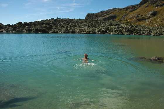 Das Wetter war dann wirklich für den Rest der Woche gut, wenn auch manchmal etwas kalt für die Jahreszeit, und wir sind nie nass geworden. Ausser natürlich beim Baden, als ich doch eine Gelegenheit am zweitem Wandertag wahrgenommen habe. Überhaupt verlief die ganze Wanderwoche sehr harmonisch, und ich danke der Gruppe für ihre gute Kameradschaft, besonders den Sprachgewandten und vor allem Hanspeter, der mir bei der Organisation sehr geholfen. Adrian |