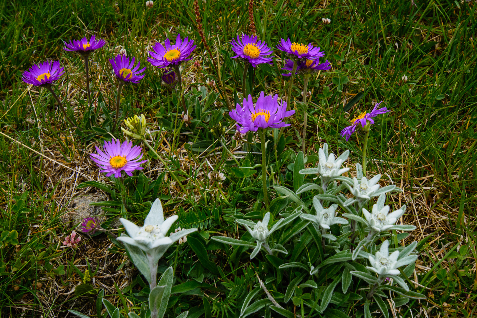 Der Aufstieg zum Fenêtre d’Ersaz (2290 m) liegt rasch hinter uns. Auf den Felsen am Pass geniessen wir die Aussicht zum Matterhorn und aufs Monte-Rosa-Gebiet. Der Weg schlängelt sich dann weiter über Wiesen, zunächst nach Norden, dann nach Westen. |