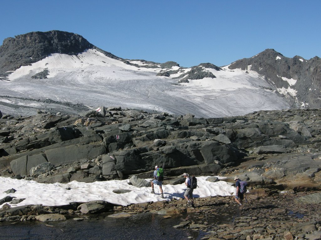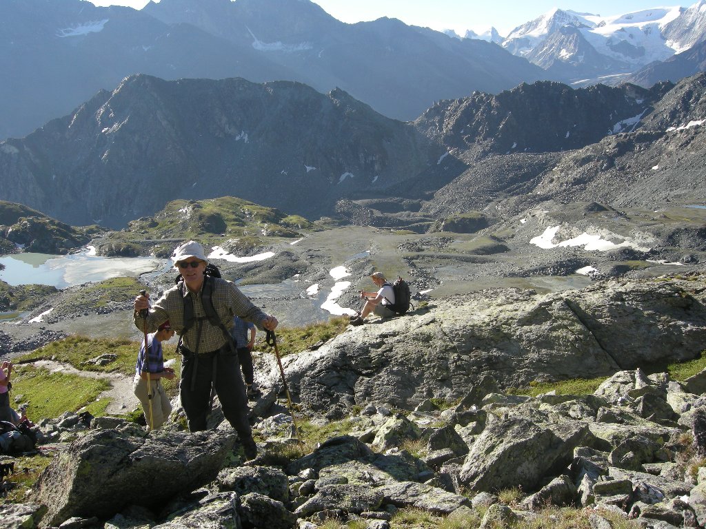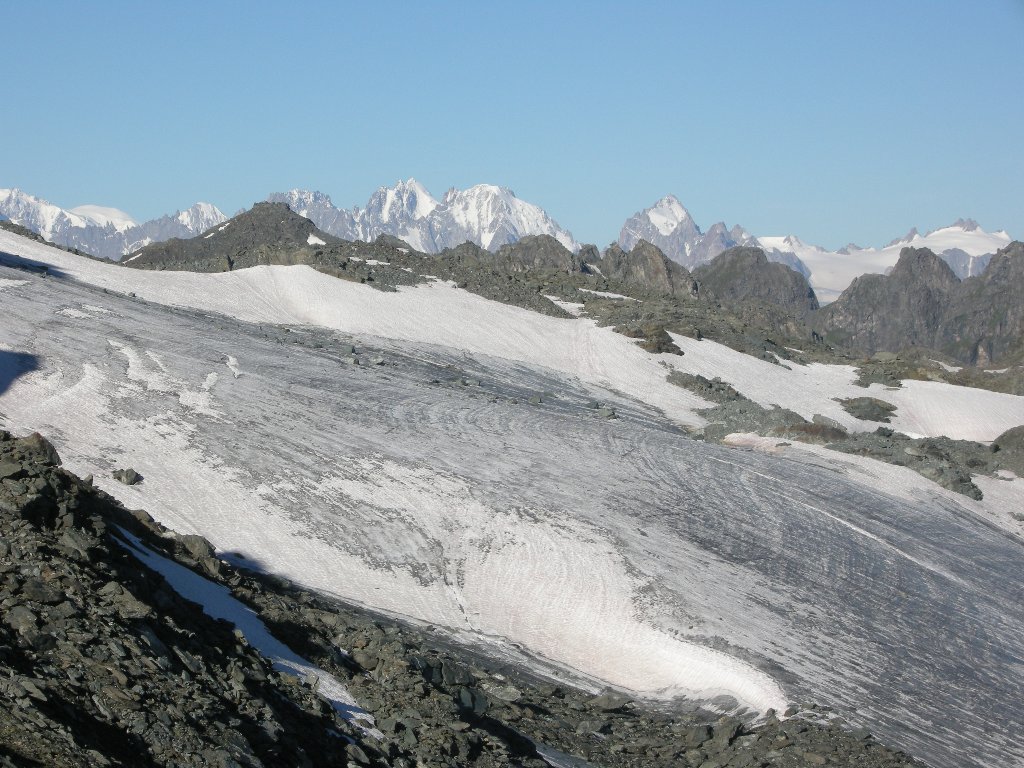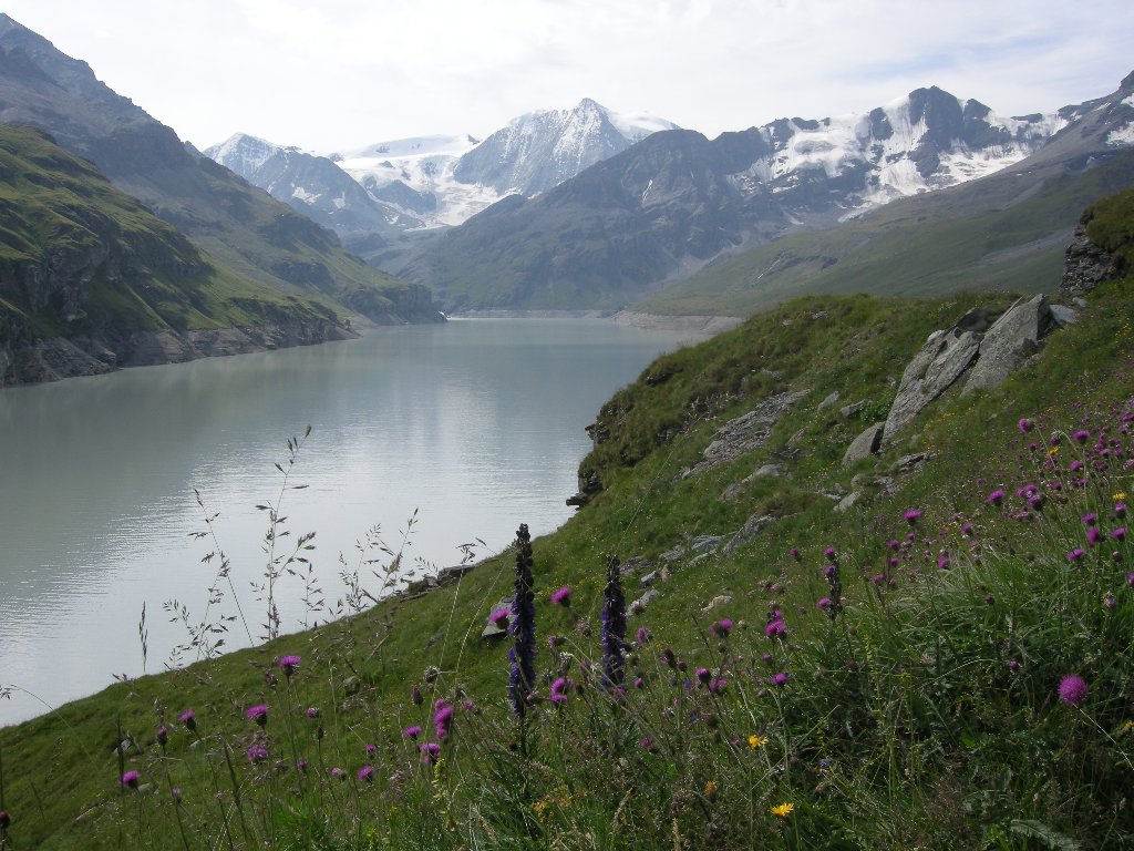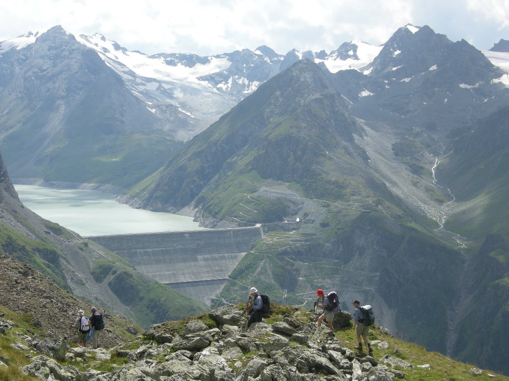 Freitag, 1.August:(Basel ab: 06:01 – Dixence Le Chargeur an: 09:45.) Dix. Le Chargeur (2102) – Staumauer (mit Werkseilbahn) (2364) – La Barma (2458) – Col des Roux (2804) – Mont Blava (2932) – Cab. De Prafleuri (2624) ↑ 630 ↓ 280 ca 4h. Unterkunft im Lager. Samstag, 2.August: Cab. De Prafleuri (2624) – Col de Prafleuri (2965) – Col de Louvie (2921) – Punkt 2628 – Cab. De Louvie (2207) ↑ 550 ↓ 950 ca 6 h. Unterkunft im Lager. Sonntag, 3. August: Cab. de Louvie (2207) – Col du Bec d’Aigle (2567) – Le Da (2365) – Tête de Sarshlau (2622) – Plan Mauvoisin(1683) -Mauvoisin (1841) ↑ 800 ↓ 1200 ca 5h 15. Mauvoisin ab 15:10 – Basel an 19:29. |