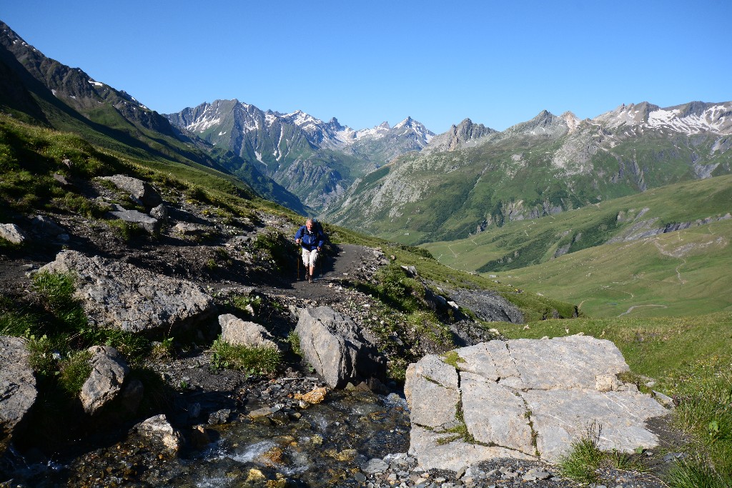 Und für die Hobbyphotographen gute Gelegenheit, die beeindruckende Vielfalt der Alpenblumen-pracht festzuhalten und natürlich auch die Sicht auf die (wie lange noch) vergletscherten Gipfel.