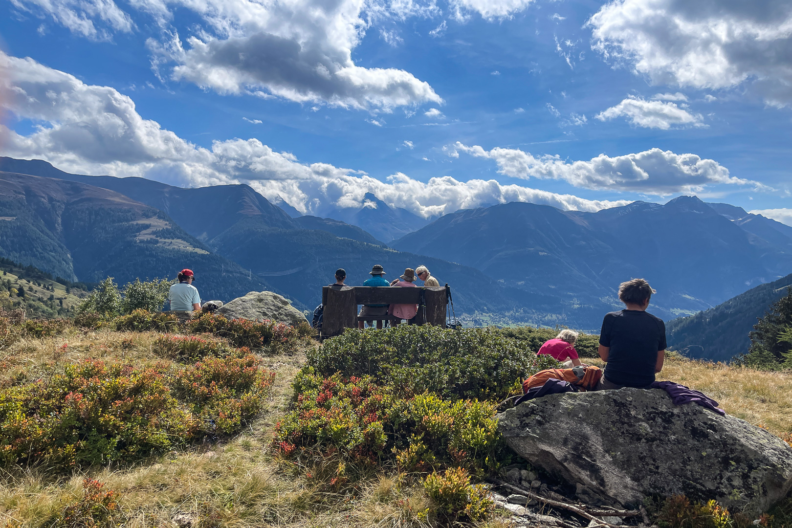 Wieder andere haben ethnologische Studien betrieben – eine Eliteeinheit unserer Gruppe wurde von Einheimischen zu Hause einladen und konnte feststellen, dass die meisten Mathrakiaten ihre Insel schon einmal verlassen haben (einige haben viele Jahre in Amerika gelebt). Adelheid hat sich mehr für das Tierreich interessiert und wurde in ihrer Spezialmission von einem Ungeheuer angefallen, das ihr die Hose vom Leibe riss – dabei handelte es sich um eine mathrakiatische Hybridform zwischen Geissbock und Hund. Vögel gab es nur wenig auf dieser Insel, weil die werden auf speziell konstruierten Bäumen zuerst angelockt und dann abgeschossen (unglaublich, aber wahr – leider). Quallen waren auch zahlreich vorhanden und wurden von manchen näher inspiziert. Dann gab es die, die bevorzugt das Pflanzenreich bestaunten – die Blütenpracht war einfach überwältigend und die Düfte berauschend. Manche gingen schwimmen (siehe später). Und dann gab es noch solche, die nur wandern wollten und alle steilen Weglein mehrmals abliefen, um auf ihre Kosten zu kommen – aber die sind nicht Thema meines Tourenberichts. |