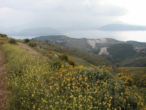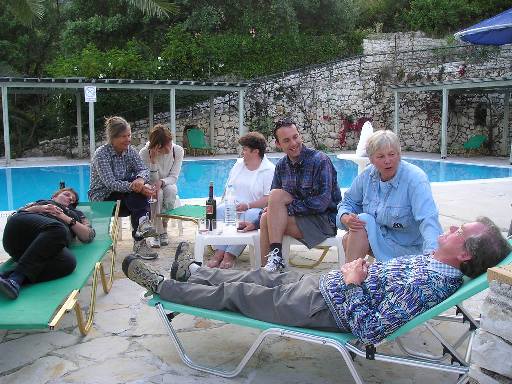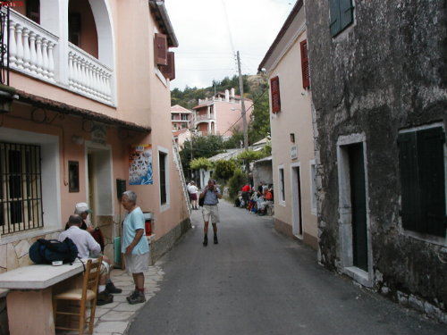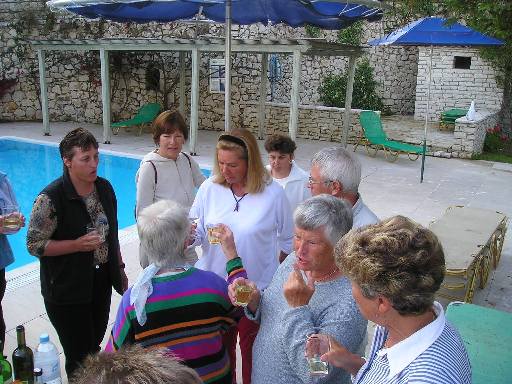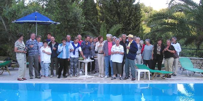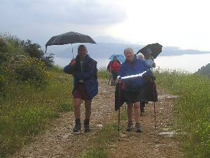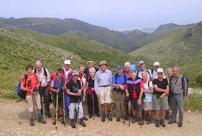 Nach dem schönen Ruhetag in Kalami Beach, mit nur kurzer Wanderung den Badebuchten entlang, galt es heute wieder ernst. Die letzte grosse Wanderung mit rund sechs Stunden aktueller Wanderzeit stand an, mit erst noch geschätzten etwa 600 Höhenmetern. Nach Buch wäre die Etappe sogar acht Stunden und 800 Höhenmeter, aber wir kürzten vorne und hinten je eine Stunde, was uns am Anfang einen Aufstieg ersparte. Erstaunlich und ein Plus für Adrian: nach dem anstrengenden vorletzten Tag, wo alle so abgeschlagen heimkehrten, fanden sich nun doch wieder 19 von uns zum letzten ‘Härtetest’ ein. Der Bus brachte uns in kurzer Fahrt nach Kentroma. Da die Küstenstrasse dort recht hoch verläuft, ersparte uns dies einen ersten Aufstieg welche uns die ausgelassene erste Wanderstunde gebracht hätte. Unser Aufstieg zum Bergdorf Porta verlief einmal mehr durch schöne Olivenhaine und lichte Wälder, und wir gewannen die erste Höhe bei angeregten Gesprächen recht mühelos. In Porta war es nach noch nicht einmal einer Stunde Aufstieg etwas früh für eine Einkehr, deshalb rasteten wir dort nur zu einer Verschnaufpause. |
