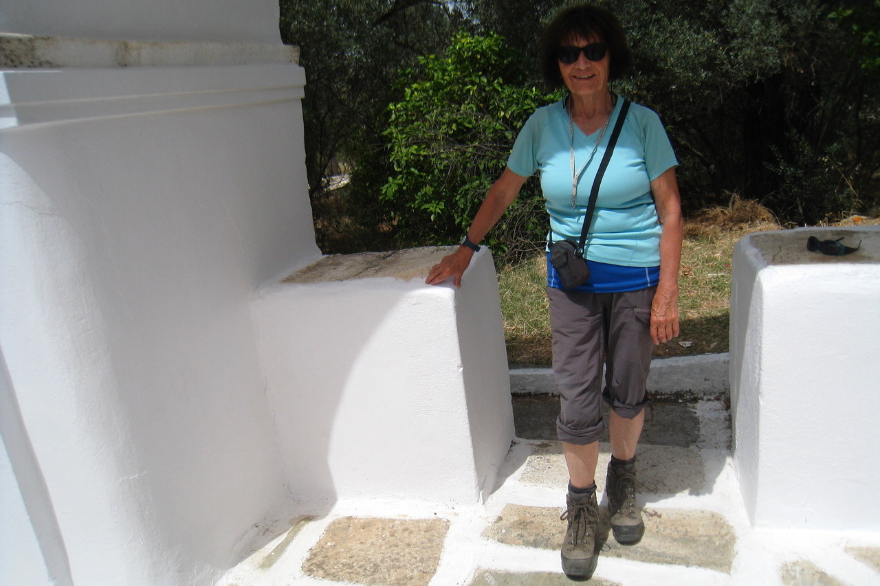 Hier wird ein weiterer Halt eingeschaltet und der Reiseführer Markus erzählt einiges über diese Steinstatue, griechisch Kouro genannt, das Wort für einen unbekleideten Jüngling. Das Gegenstück wäre die Kore, das Mädchen oder die Jungfrau, die allerdings bekleidet ist, wie wir dies am Erechtheion Tempel in Athen mit der berühmten Korenhalle sehen. Als tragendes Element wird die Kore allerdings Karyatide genannt.Wir wandern dann weiter hinunter zu einem kleinen Steinbruch und dann in einen Garten hinein, wo ein weiterer Kouro liegt, welcher wahrscheinlich noch mehr Besuch kriegt, da er näher liegt als der andere Steinmann. Der nächste Garten, den wir betreten wird Paradiesgarten genannt, ist aber in Tat eine Abfallhalde. Unser Bus erwartet uns ausserhalb des Ortes und bringt uns zurück nach Naxos in die Nähe unseres Hotels.Ein gemeinsames Abendessen beschliesst den erreignisvollen Tag, der uns einen Blick in die Vergangenheit und in die für uns typische griechische Landschaft gegeben hat. Marianne |