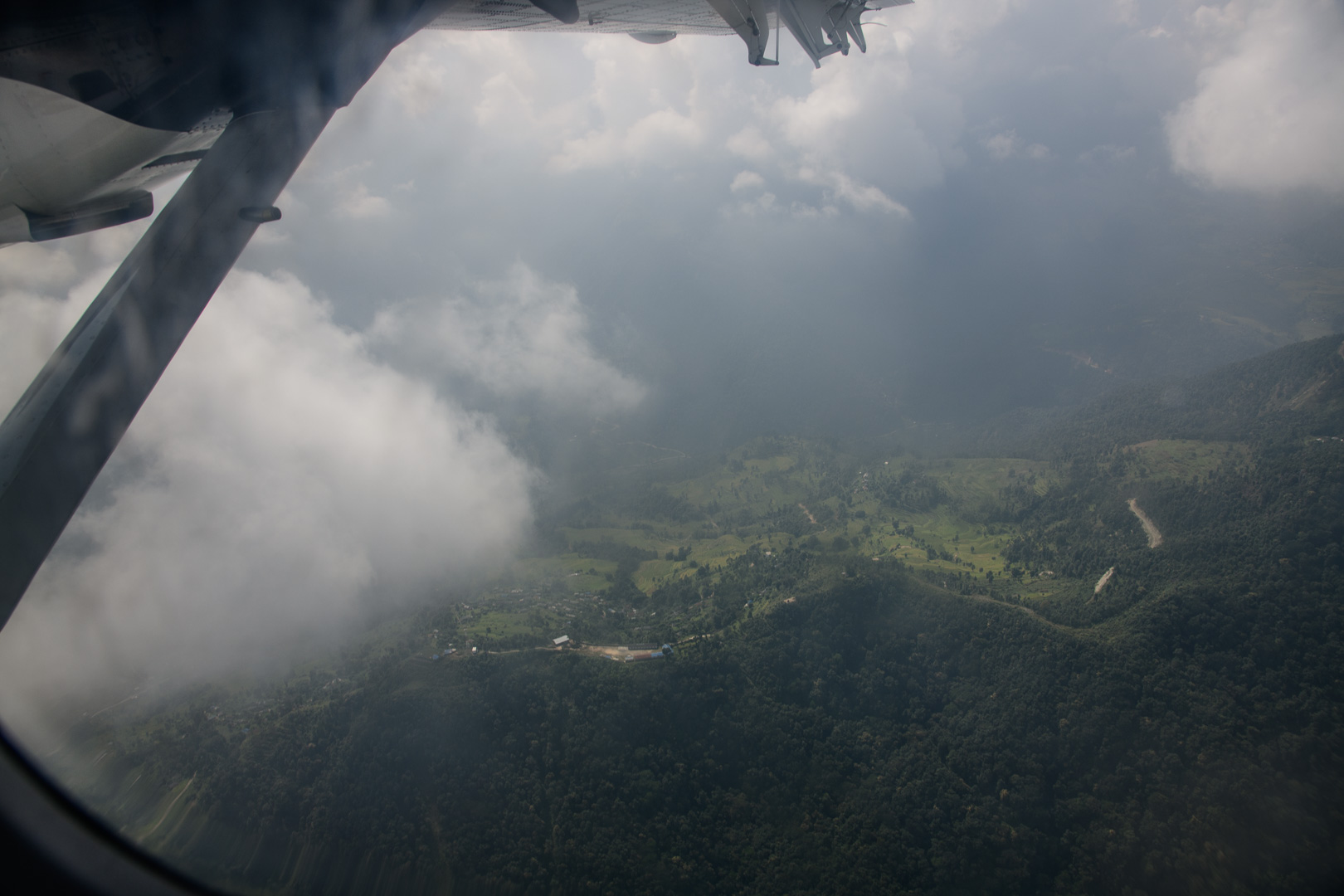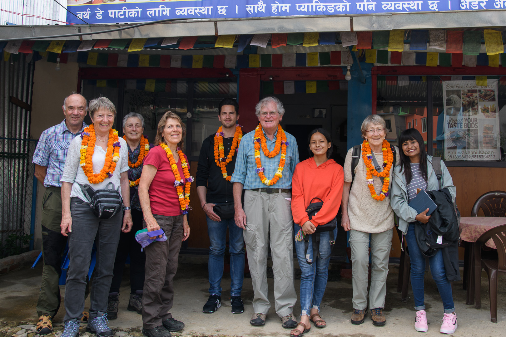 There were views of the Himalaya just before landing but somewhat spoilt by mist and cloud. On arrival we first had lunch at the restaurant of the family firm which is organising our trek. We were welcomed in the traditional way with garlands of flowers.