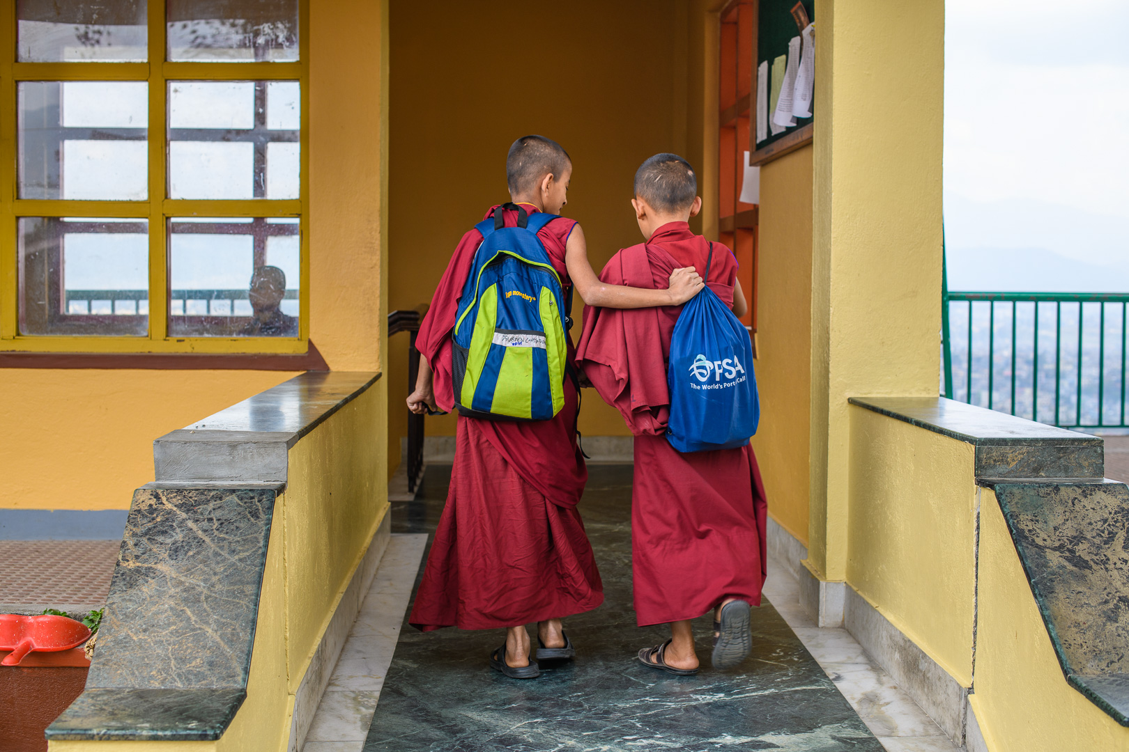 Visitors from all over the world come here to attend courses and enjoy the spiritual atmosphere of the place for study and practice. The buildings were not spectacular but quite attractive but the view across the valley magical. The schoolboys wore the traditional red Buddhist robes but still had school-bags similar those of western children.