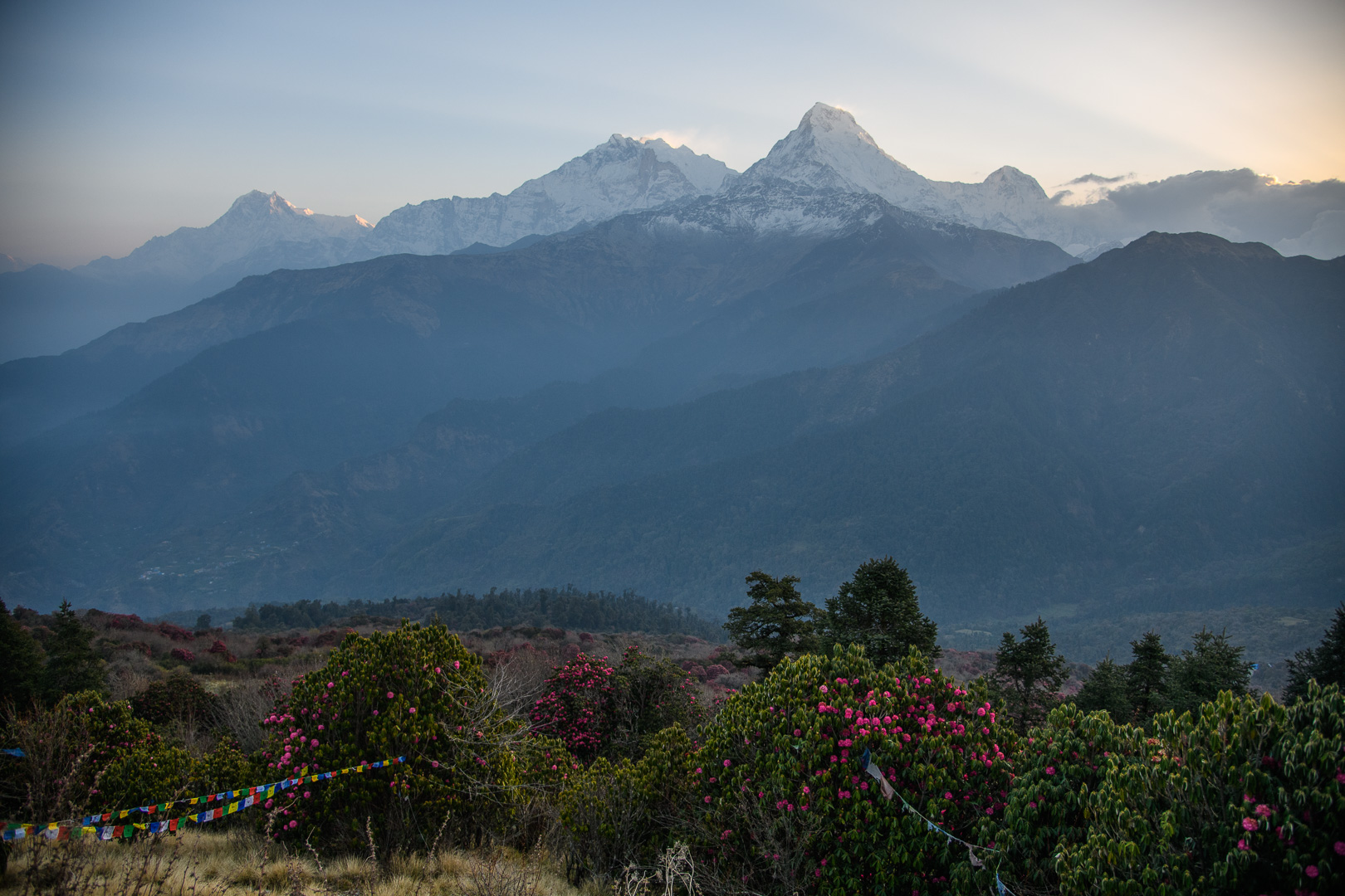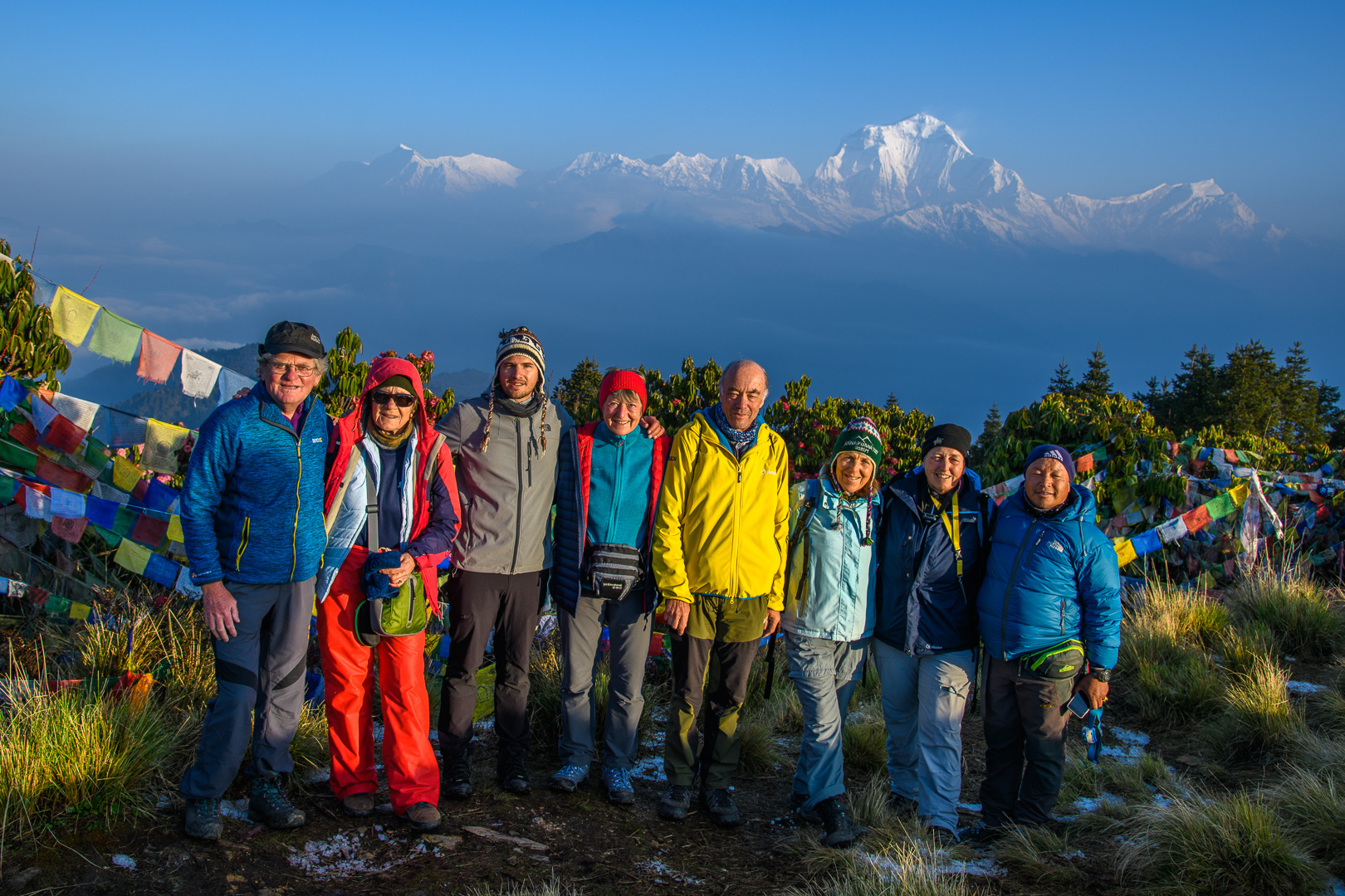 We then went over to the others and took group photos in front of some prayer flags and the Dhaulagiri, after which it was time to return to the lodge in Ghorepani.