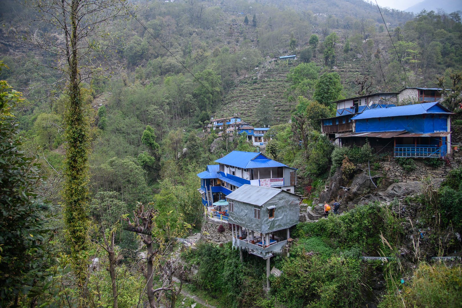 We had the usual breakfast with porridge and omelette and changed into less warm clothing before commencing our long descent back to roads and civilization. It had not however been very cold on Poon Hill. Often it is much colder in April.