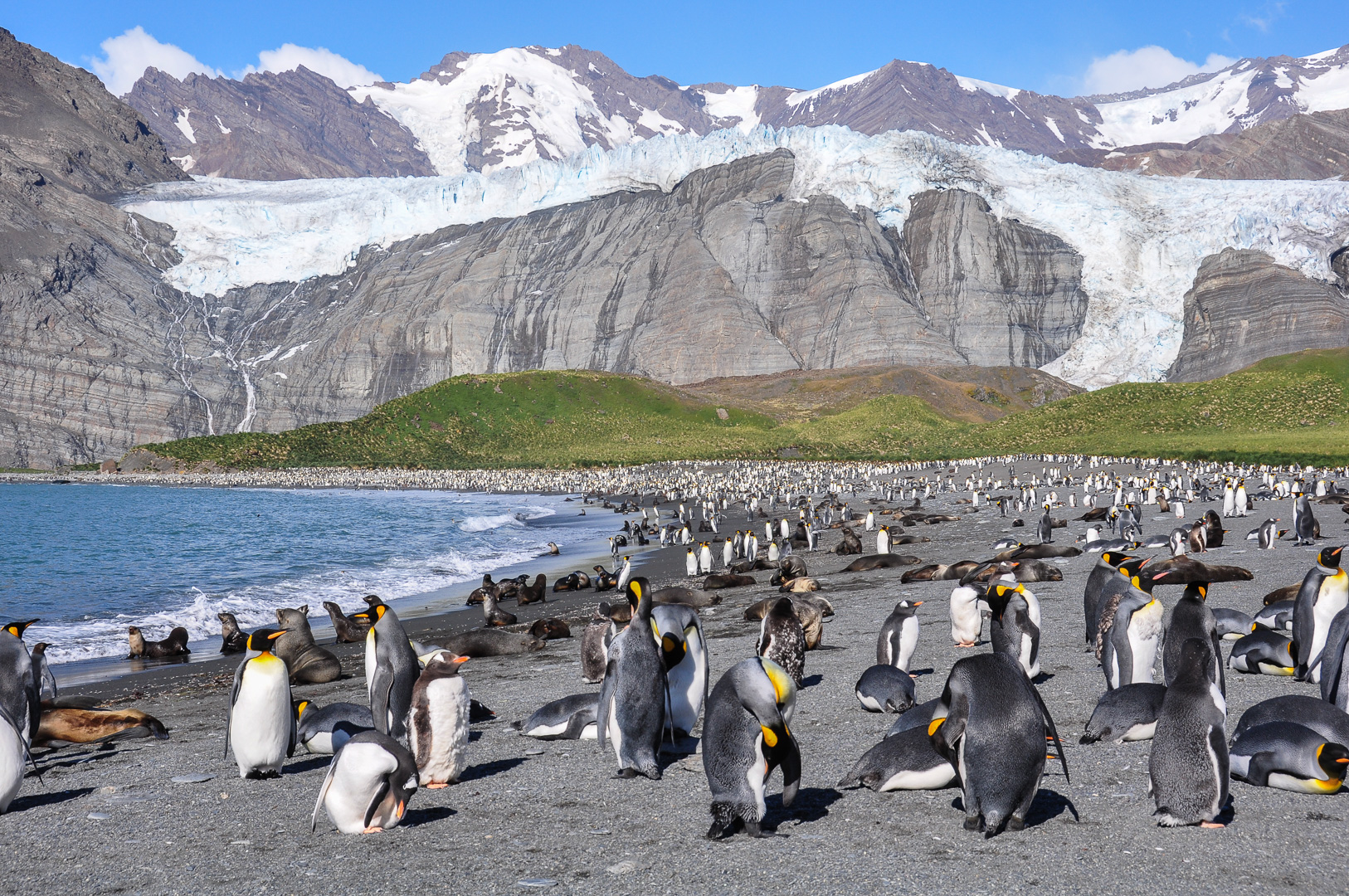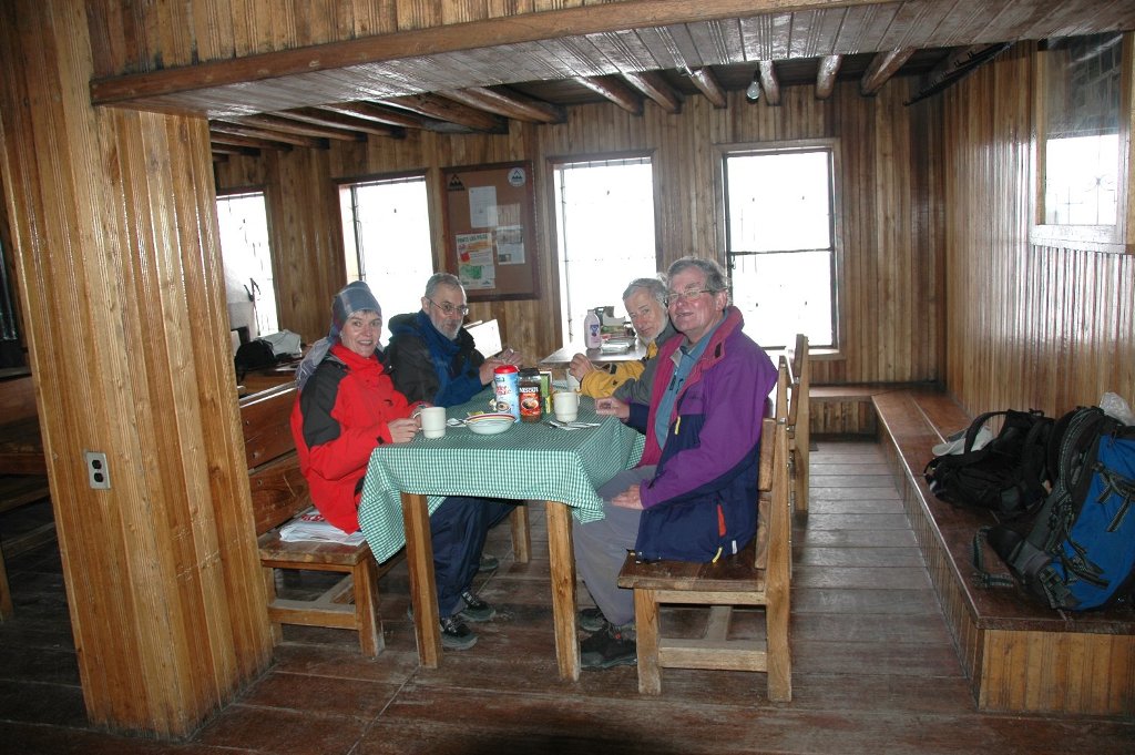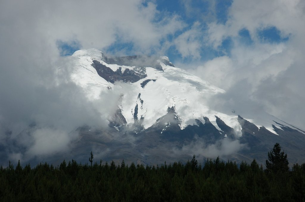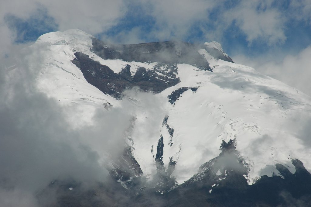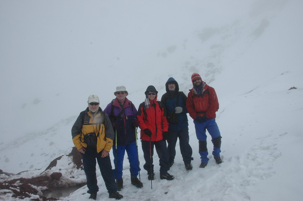 The following morning after breaking camp and actually seeing Cotopaxi a bit better for a few minutes we drove in the bus for an hour up to the end of the road. It stops at 4600m just 200m below the hut and is in remarkably good condition. From there we again had brief glimpses of parts of the mountain before it closed in again all together. The 200m were hard going in lava ash and took me 45min. Silvana and Eric were much quicker and Fred slower, feeling the thin air. I was not as fit as I was for Monte Rosa or Kilimanjaro. After a short break we continued for another half-hour partly in snow and reached the edge of the glacier. Supposedly at 5000m but really only 4920m. Anyway higher than Mont Blanc. A 2 min. stop at this point was enough for everybody – except me. After lunch in the hut I talked to a young English group who had just climbed to the top taking 12 hours. The boys had reached the top and said that there was a lot of new soft snow which made it hard going, much harder than Kilimanjaro which they had also climbed. This did not surprise me. The girl turned back at 5600m which did not surprise me either looking at her. Driving back down the mountain the sun came out and we stopped again at the lake where it had rained before – my request, more bird filming by Silvana. We even had some better views further down and were able to take pictures.