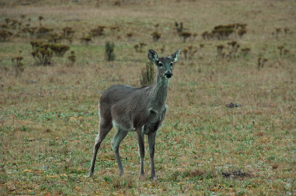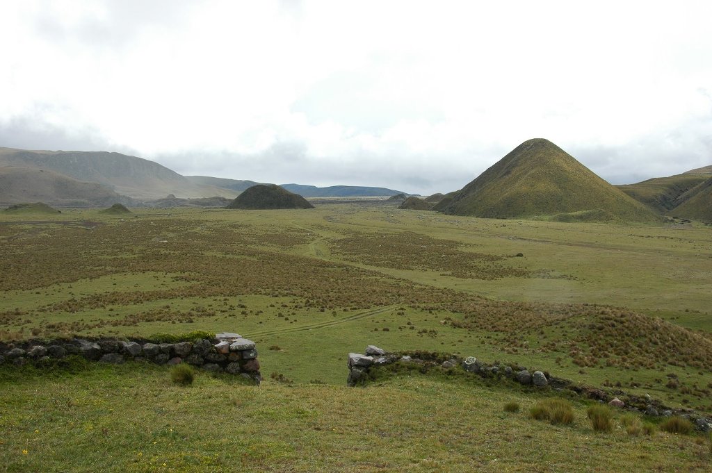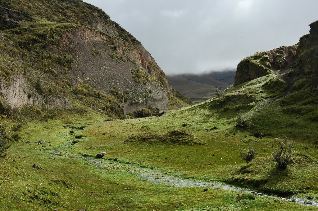 The next day had a 6.00 breakfast at my insistance (only the guide did not want it) because the weather is better in the morning, although we only saw Cotopaxi vaguely for about 30 seconds. It paid off and we had a good walk slightly lower below the cloud and actually past the Tambopaxi lodge where we would have liked to stay. Later we retreated in there from the rain for a second lunch. Whilst it had still been dry and partly sunny the main attractions were a heard of ‘wild’ horses it a small canyon and an Inca ruin which looked like a Lake District stone wall on top of a little hill. It was a good place for our first lunch, again at my insistance otherwise we would have missed it altogether because of the rain. Back at the camp again we saw type of deer that they have here from quite close.