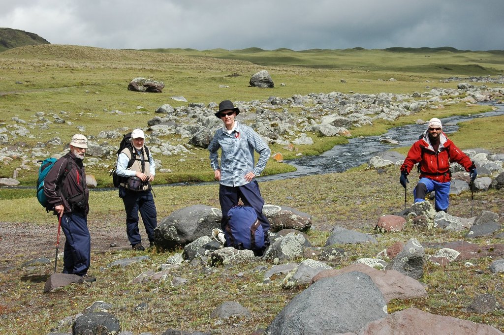 Today we got up early and visited the Saquisili market at 6.00am before breakfast. The animal market is that early but the tourist market was still being set up. I did not buy anything, but did buy a small Indio painting today in the hotel grounds. Not in the programme was a lunchtime visit to a nearby hacienda which is built on and around an Inca ruin. In between it was a mission. Some of the walls are the closely fitting Inca type without any mortar between the stones. It now belongs to the daughter of a previous president of Ecuador and she gave us a personal guided tour. Lunch was very good and we talked to an American family who were taking one year travelling with their two quite small children. The remaining part of the afternoon was spent viewing the buildings and gardens of the impressive Hacienda La Cienega where we were staying. Alexander von Humbolt once stayed there. Later we heard that the programme was again subject to change and we would not be moving from camp to camp around Chimborazo with packhorses as planned. We were again to stay at a fixed camp accessible by road – or maybe at a lodge, a variant which everybody voted for.