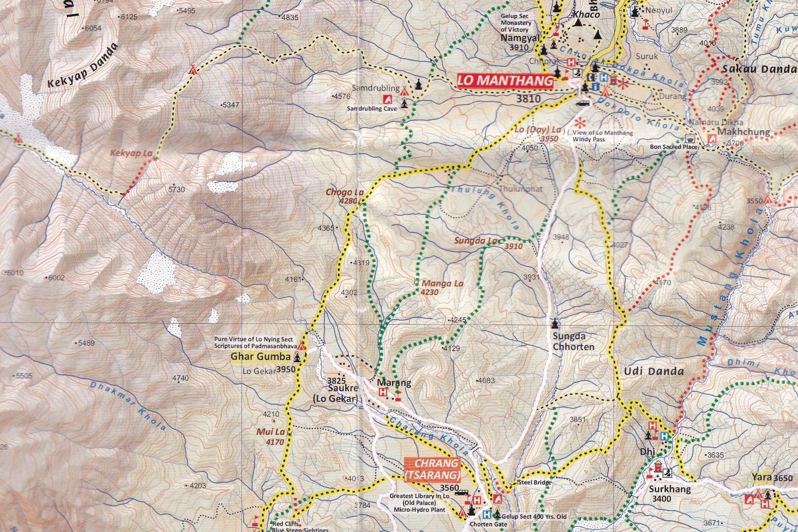 We would be in Lo Manthang for 3 nights giving plenty of time to see all the sights of the town and the surrounding area. The lodge was, apart from the WiFi, much the same as the previous ones. Wash basins were in short supply (one for the entire place) and toilets were rather primitive. There was also always one shower which cost something and was difficult to use. The food was mostly good in the lodges consisting of various rice or nudel dishes often being vegetarian. Alcohol including beer was banned at high altitude by our guide.