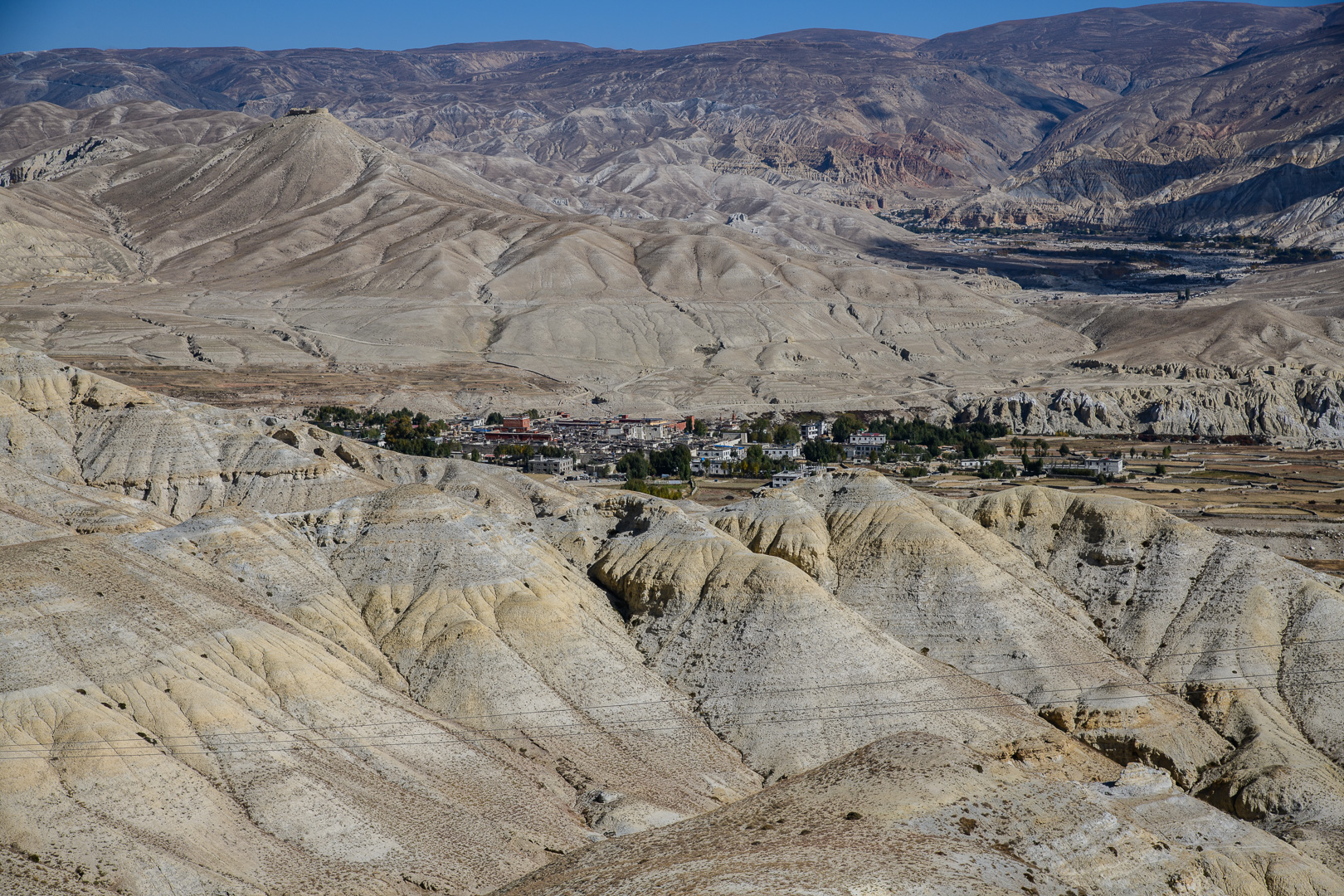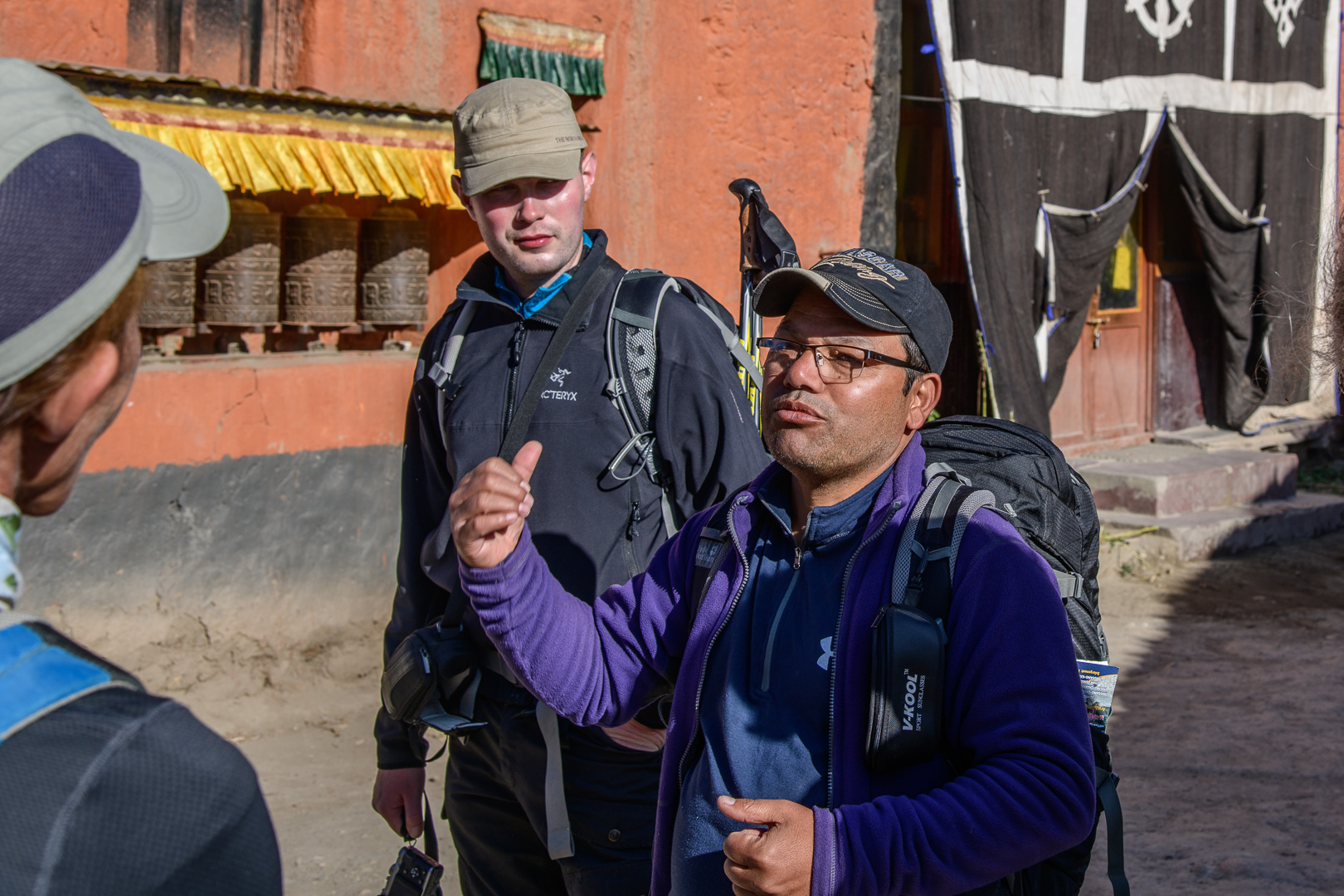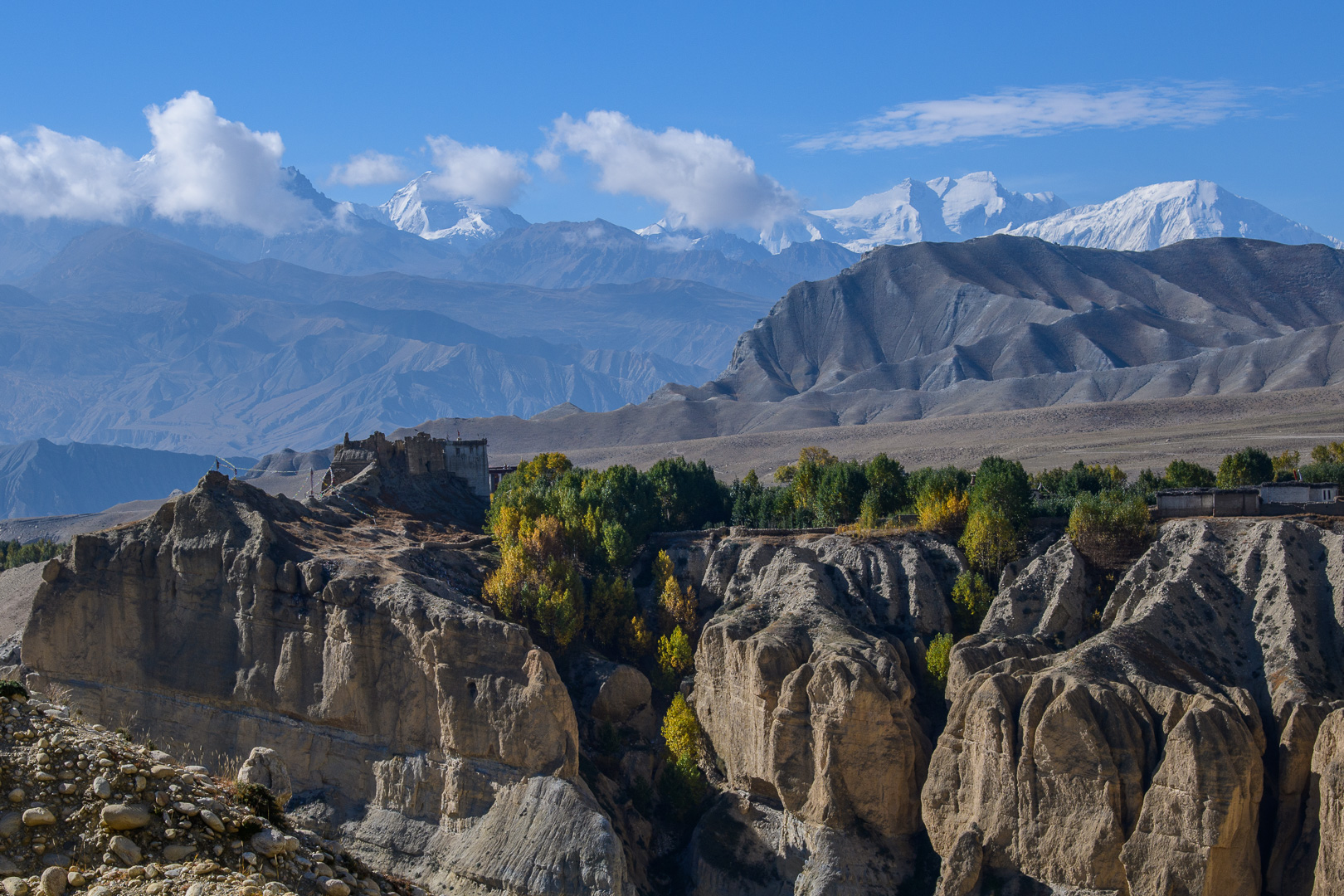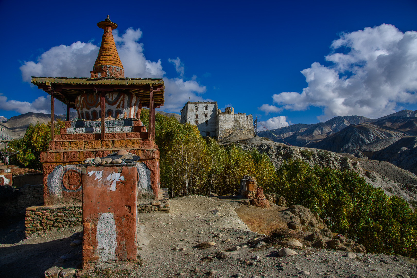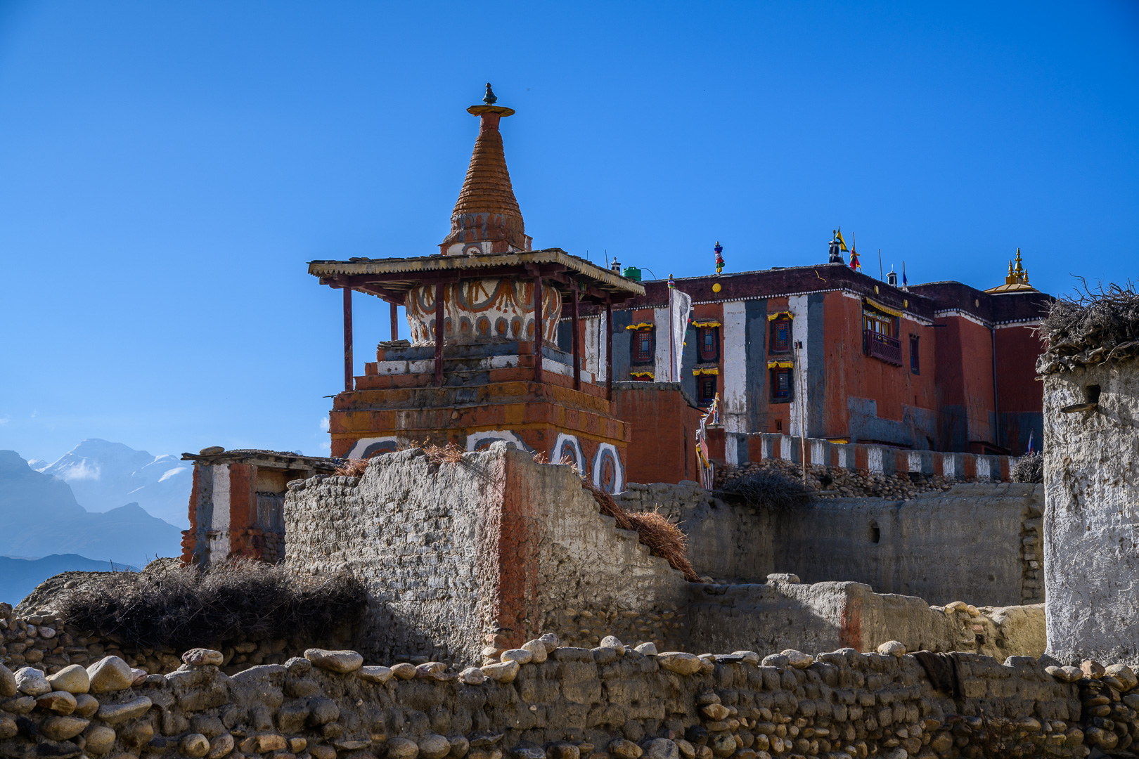 I did not go with the group today because our guide thought that the 4200m pass with 1000m ascent would have been too much for me. I first visited the monastery again with them. It looked different in the early morning light and really is very scenic next to the huge gorge (only a small tributary of the Kali Gandaki) and the deserted but more or less intact castle. With so little rain buildings disintegrate very slowly.