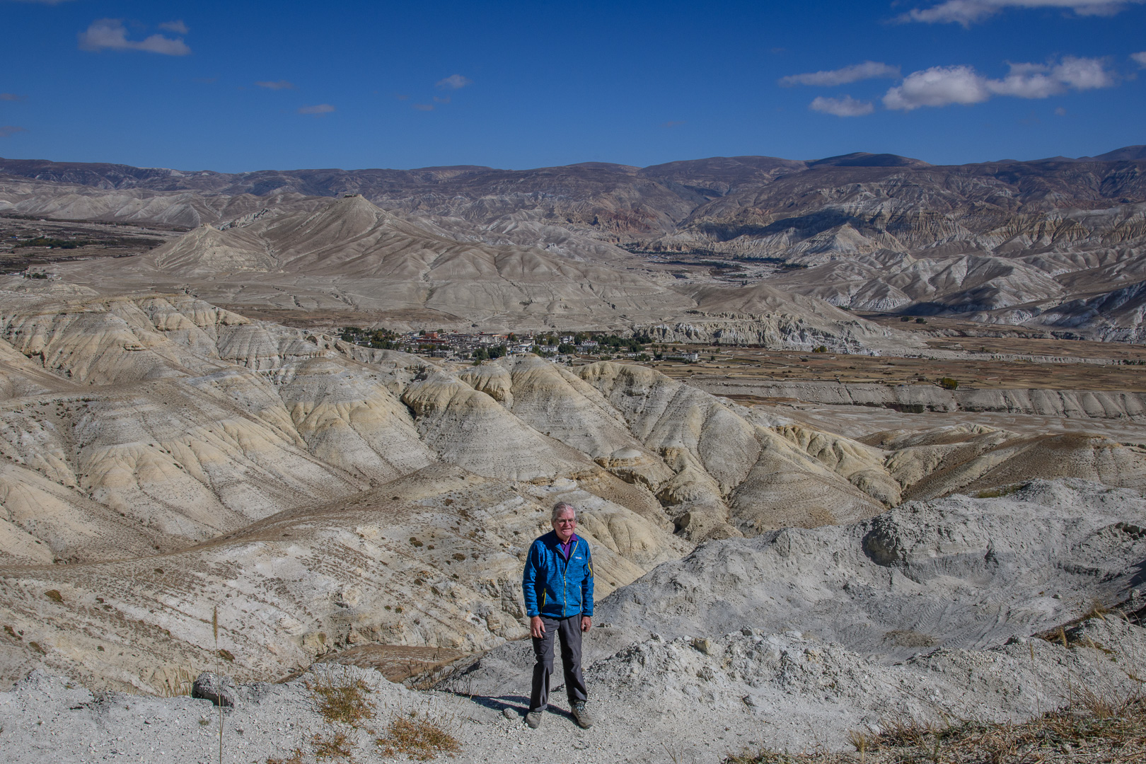 After the others had left on their trek I joined a Sherpa and the driver in the jeep. We first crossed another less precipitous gorge with good views back to the castle and Ghompa on the other side. We then drove on over a lower pass 3960m where we had the first views of Lo Manthang, the capital of Mustang. It lies at the centre of a broad relatively flat valley which gives it its name. Our lodge lay just outside the city walls which are still intact.