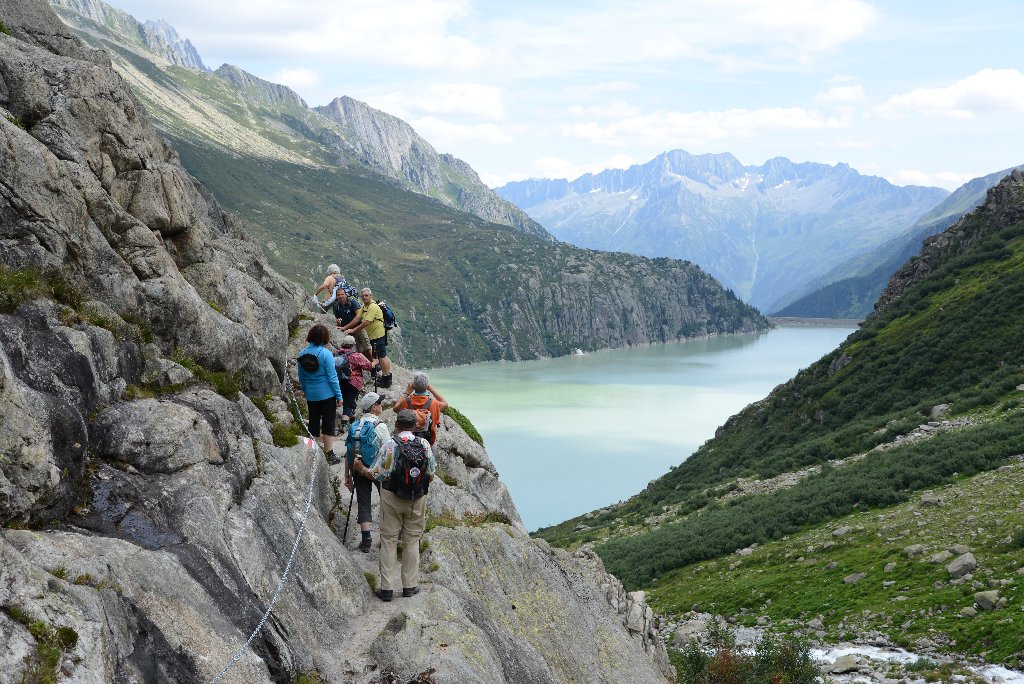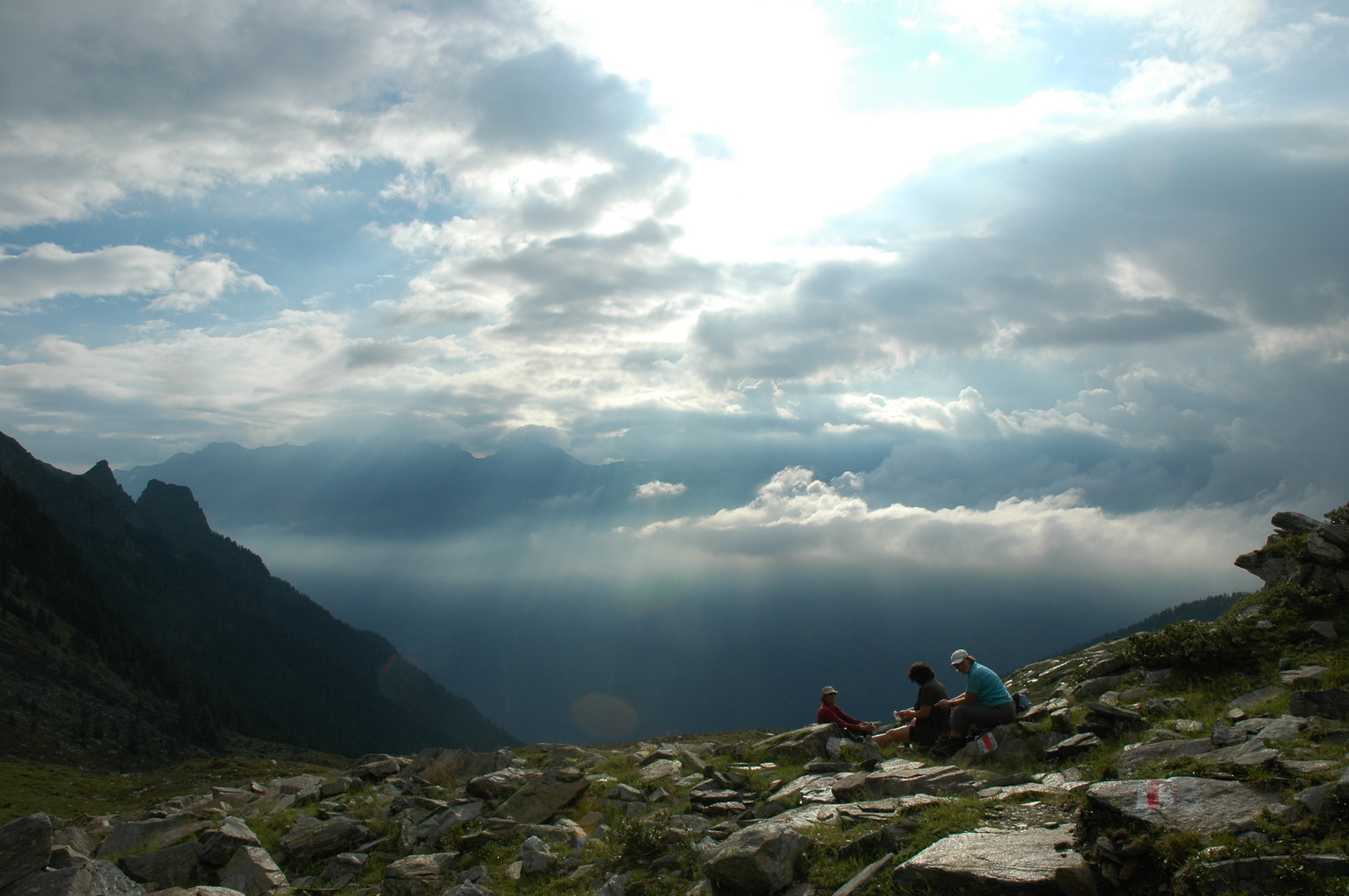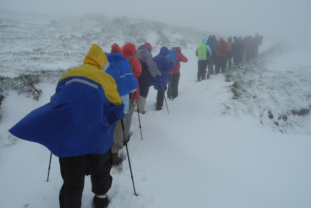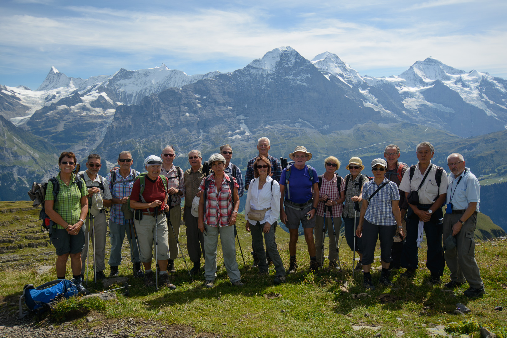 Ich habe wie immer mit dem Aufstieg langsam angefangen, aber alle sind brav hinter mir geblieben bis wir oben waren. Bei dem Aussichtspunkt habe ich ein Gruppen Foto gemacht, aber es ist mir nicht gelungen alle auf ein Bild zu bekommen. Man hatte eine gute aber nicht ganz klare Sicht über Basel nach Norden. Auf dem Grat ging es zügiger voran und wir waren bald auf dem höchsten Punkt (875m). Dort gibt es eine kleine Markierungsstein und eine Notiztafel worauf man überrascht lesen kann, dass im 18.Jahrhundert die Wiesen bis zum Gipfel gereicht haben! |