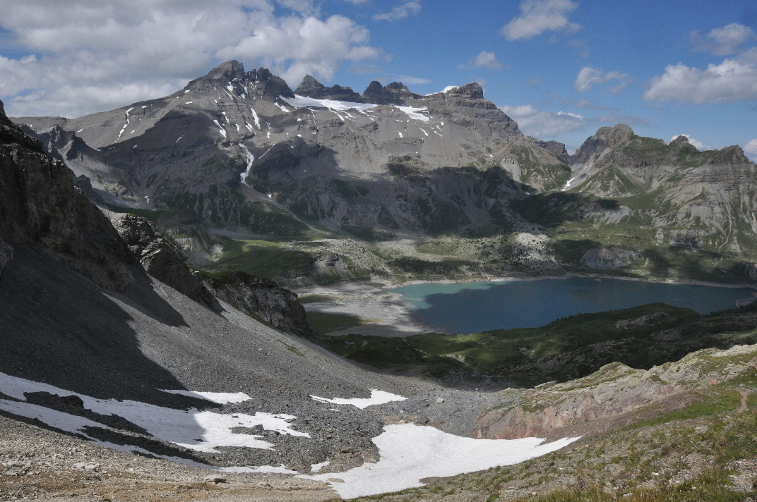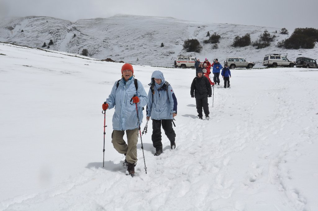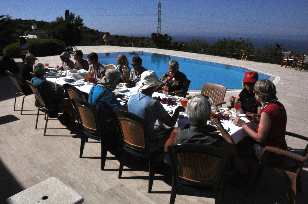 Beim Metzerlenchrüz war es noch etwas früh für das Mittagessen, so dass wir trotz gute Sitzgelegenheiten weitergelaufen sind. Eine halbe Stunde später erreichten wir eine Stelle wo man gute Sicht nach Süden hatte. In der Ferne konnte man einen schneebedeckten Berg mit einem grossen Turm auf dem Gipfel ausmachen. Es muss der Chasseral gewesen sein. Wir haben uns weit verstreut auf dem Hang bequem gemacht und unsere Pause in der Sonne genossen. Es war ganz im Sinne von ‘Social-distancing’. |