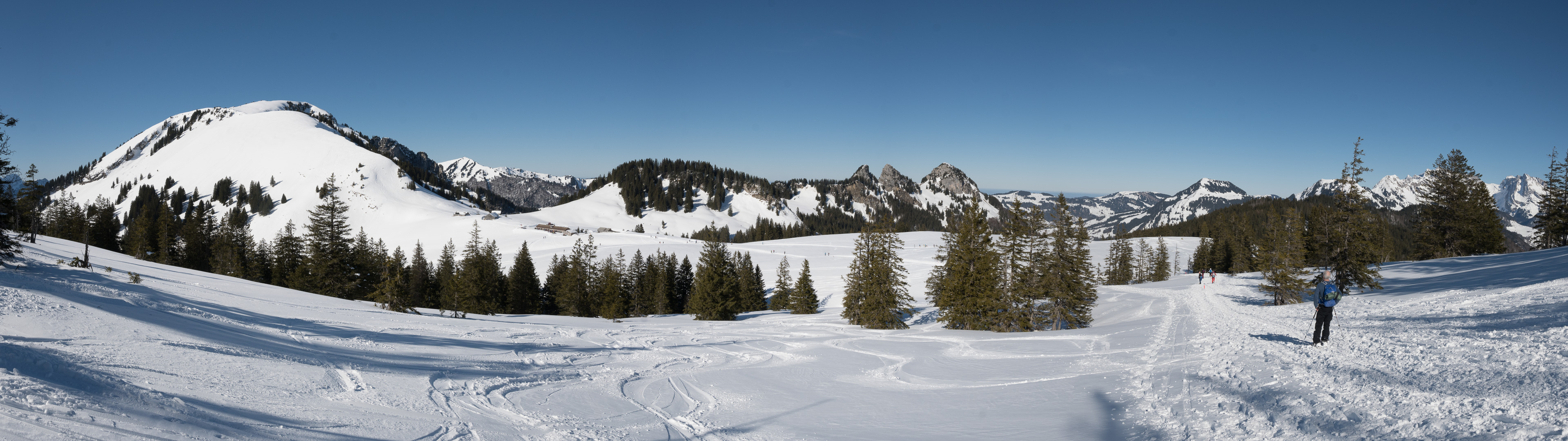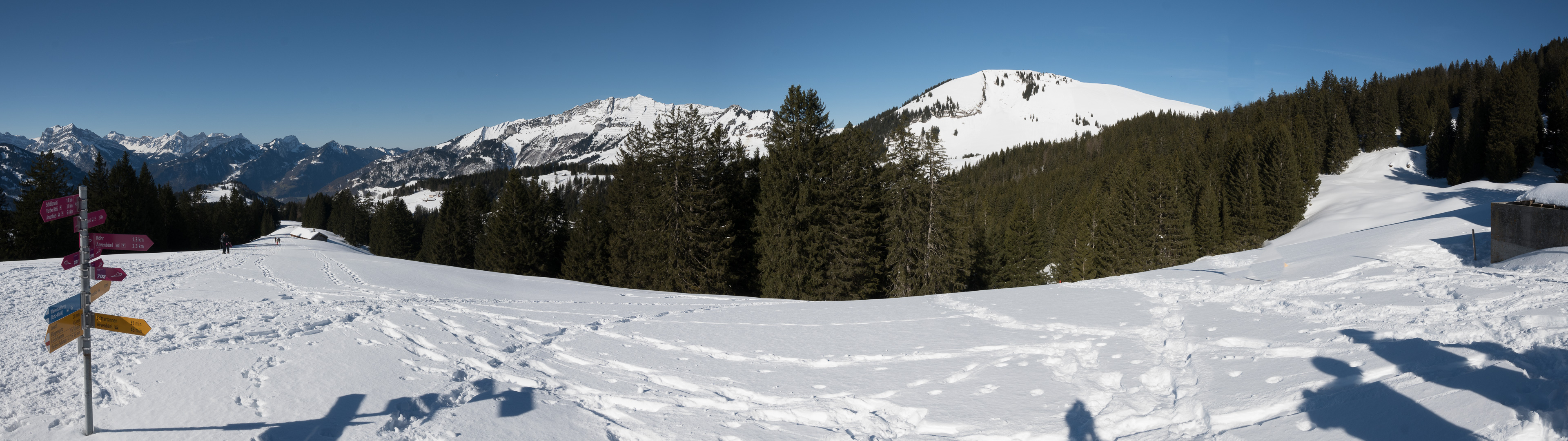 Die für diesen Tag ausgeschriebene Schneeschuhtour in den Freibergen musste ich ändern, da es dort zu wenig Schnee gab. Als Alternative wählte ich den Vorder Höhi Trail in Arvenbüel.