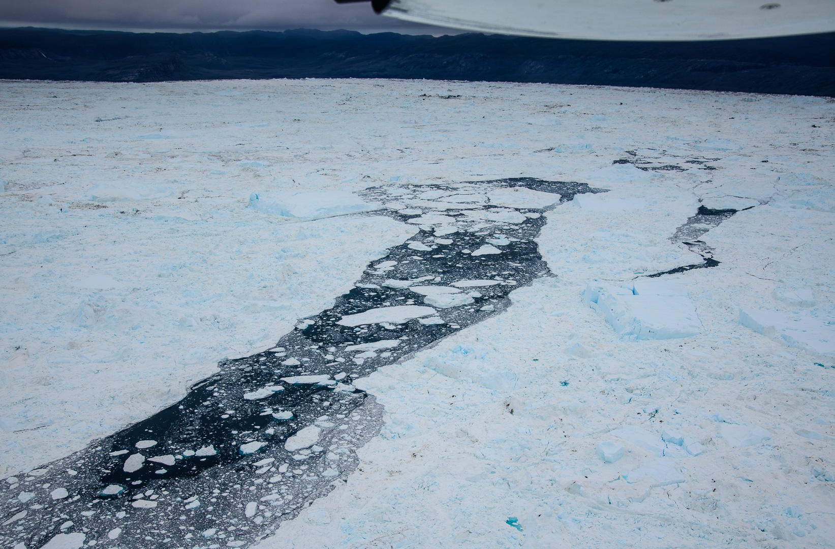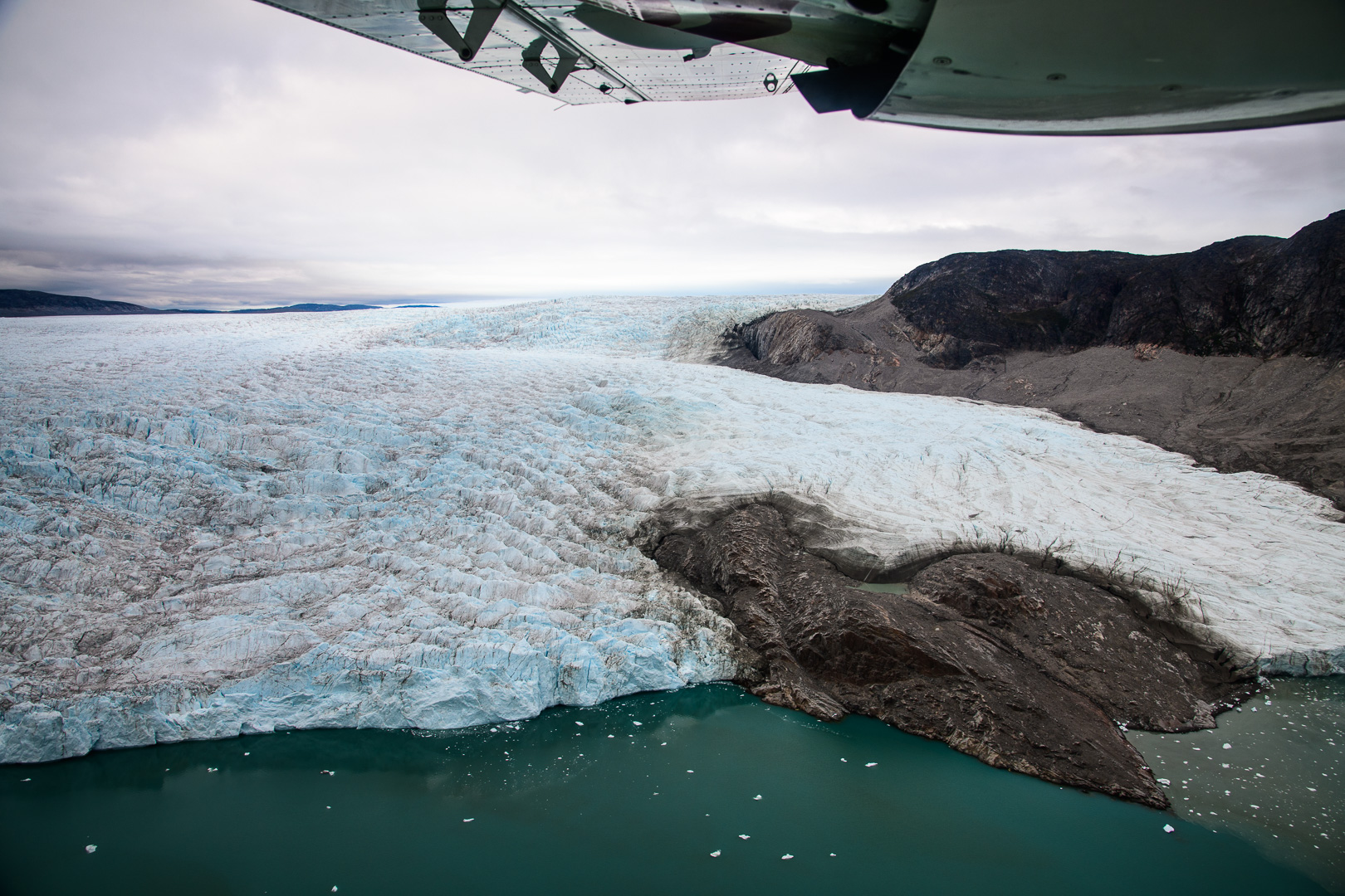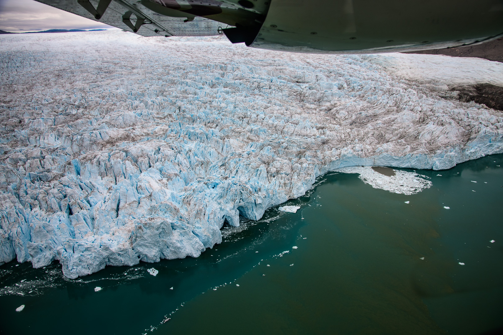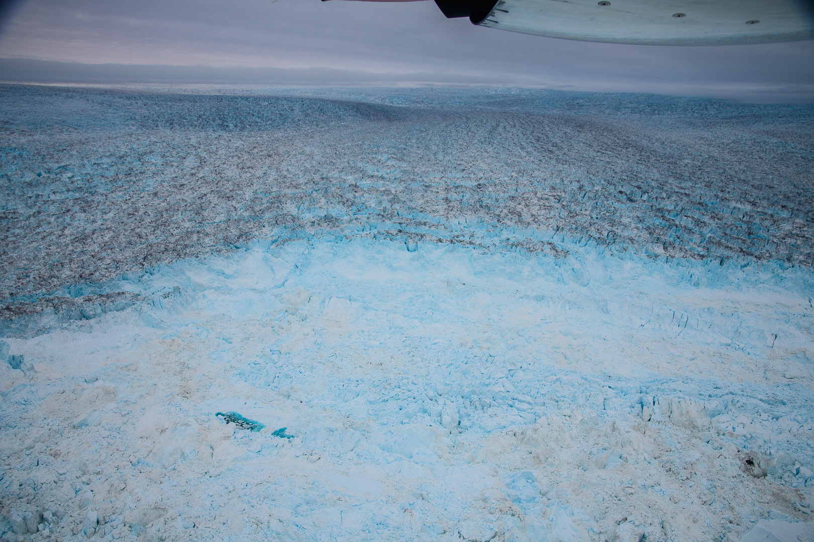 I again opted out of the planned walk and took the last day more easily. Only in the late morning did I think I should take the opportunity to see the glacier more closely. It was possible to make flights by helicopter or light aircraft to the glacier face where it breaks off the inland ice about 50 km inland. The helicopter trips were all booked out but I could go at the end of the afternoon on a one-hour flight with a small 5-seater plane. The round trip from the airport first went to the Avnnarieq side glacier and then along the edge of the inland ice to the head of the Kangia glacier. There great views of the 7 km wide ice cliff where the icebergs break off and then one flies the full length of the fjord packed with giant icebergs. Not all of it can be seen any other way. On reaching the sea even some whales could be spotted. The weather was not perfect but clear enough. I had taken a taxi to the airport and back again (with 2 other people) directly to the restaurant in the centre of town where I was to meet the group, saving walking from the hotel. I was back just in time for our last dinner which consisted of halibut again. After dinner I walked back along the coast and could take photos in the good evening light since I still had my camera with me.