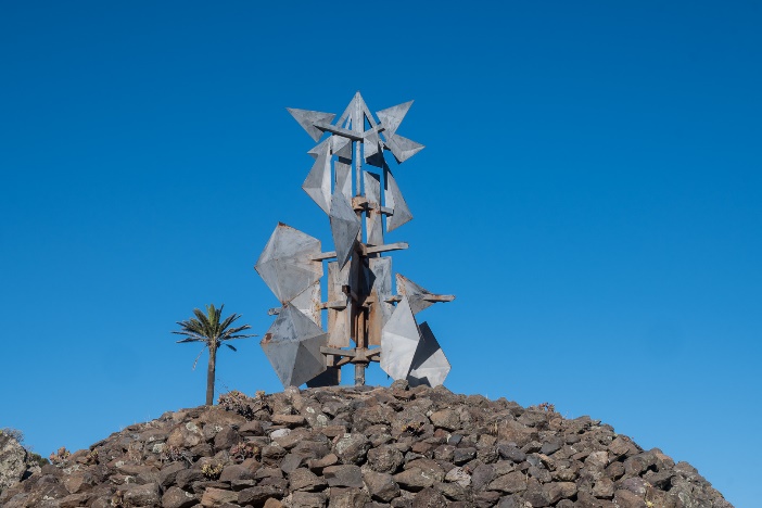 Unterwegs machen wir einen Stopp in Mirador del Palmarejo, beim Windspiel (nach Entwurf von 1989) sowie ehem. Restaurant von César Manrique. Diesem weltberühmten Maler, Bildhauer und Architekt (1919-92) war es ein Anliegen, Kunst und Natur miteinander in Einklang zu bringen. Von den Aussichtsterrassen bietet sich ein Ausbilck ins obere Valle Gran Rey und hinab bis zur Küste nach La Calera. In der Ferne sehen wir bis nach Teneriffa mit dem Teide sowie Las Palmas. |