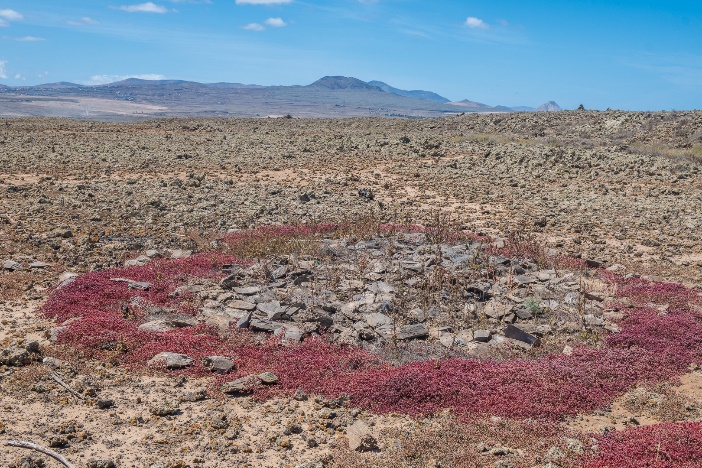 Wir liefen auf einem vorbereiteten Weg um den Montana Colorada zur anderen Seite von der Hondo. Unterwegs erklärte Tina die spärliche Vegetation, dass nur aus einige gedrungene Pflanzenarten bestand. Aus den Samen von einen könnten man eine Art von Gofio für arme Leute machen. Gofio war der Getreidegericht der Guanchen, die Ureinwohner der Kanaren. |