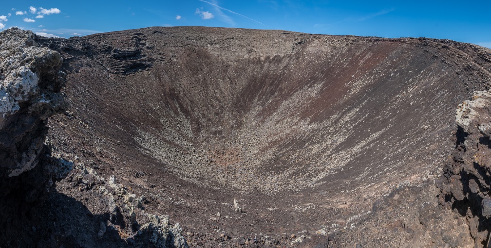 Auf eine mit Pflastersteinen gebauten Weg stiegen wir steil hinauf zum eindrücklichen Kraterrand von Calderón Hondo. Es gehört zu einer Gruppe von kleinen Vulkanen die seit dem letzten Ausbruch den Nördliche Teil von Fuerteventura bilden. Alle sind schon längst erlöschen. |