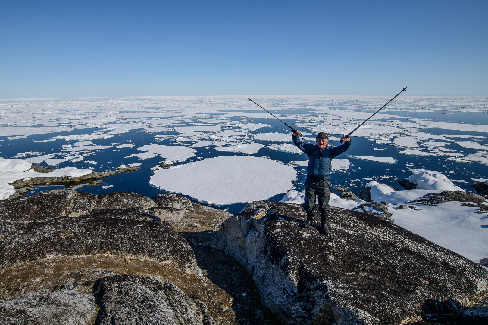 We woke up to spectacular sunshine and views of mountains and ice as we approached Ytre Norskoya (151. Norsk-). The long hikers set off to reach the summit of the island where they were treated to a spectacular view and enjoyed seeing and photographing the little auks. The people on the medium walks had a lovely encounter with snow buntings, a walrus on the ice, and even a yellow wagtail flying by. The leisurely walkers had great views of a seal resting on a rock next to the shore and took a stroll to a small peninsula on the island.