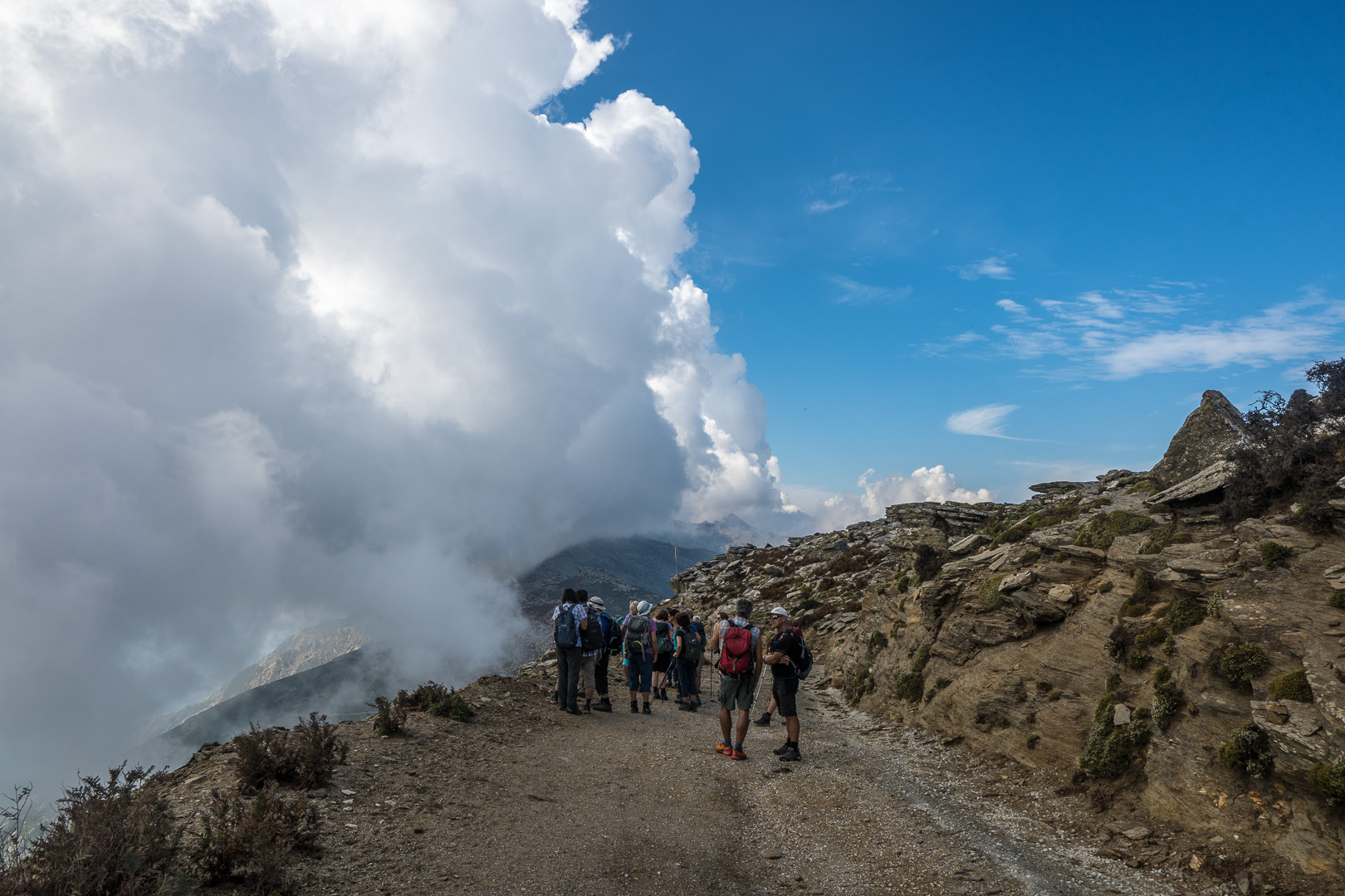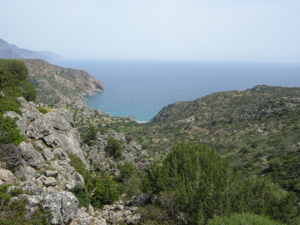 Vom Bergkamm im Osten von Ikaria haben wir einen fantastischen Ausblick über einen Grossteil der Insel. Teilweise auf einem gut erhaltenen Plattenweg, aber auch querfeldein durch Heide und über steile Felsen steigen wir ab ins fast ausgestorbene Dorf Mavrato. Als Highlight des Tages lockt das Baden in den heilsamen Thermalquellen direkt im Meer. Ein gemütliche Taverna mit frische Meeresfruchten zieht uns zum Verweilen an.