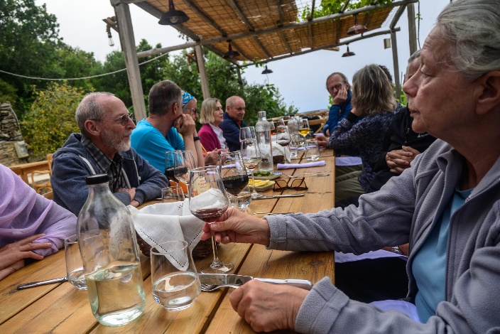Am frühen Abend führen wir zum Weingut von Jorgos und Eleni in Pigi. Nach einer Führung über den Hof und diversen Weinproben gab es ein griechisches Essen mit traditionellen Vorspeisen und selbst gemachten Nudel mit feinem Gemüse. Jorgos hat uns erklärt über die Vorzügen der Ikarische Essensweise für eine gesunde und lange Leben. Ikaria ist bekannt für die Langlebigkeit seine Leute und er gibt sogar im America Vorträge über diese Thema! |