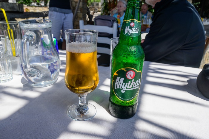 | Um den Weg hinauf zur Bar in Nas abzukürzen, ziehen wir unsere Schuhe und langen Hosen aus und durchschreiten einen See. In Nas verspeisen wir ein schmackhaftes griechisches Nachtessen. Inge | |