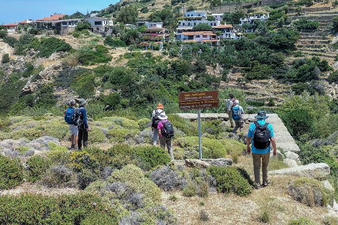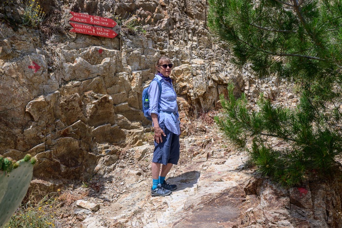 | Heute besteigen acht Wanderfreudige den Bus, der uns nach Agios Dimitros bringt. Auf 320 m Höhe steigen wir in die Schlucht Chalaris ein (die alles mit sich Reissende). Der Weg bis hinunter zum Bachbett erweist sich als recht schwierig. Einige haben verzichtet und den guten Rat unserer erfahrenen Christina berücksichtigt und stattdessen den gemütlichen Spaziergang vom Hotel nach Nas unter die Füsse genommen. | |