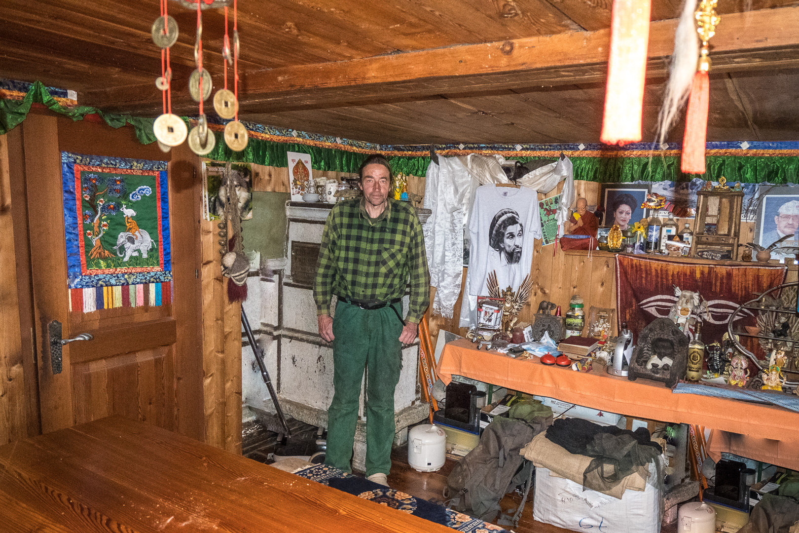 Die Lehmpiste wird immer schmaler und holpriger. An einer Stelle, an der das Car noch zwischen Felswand und Abgrund umdrehen kann, lässt uns der Fahrer aussteigen.Es ist 10:30 Uhr und wir haben hier den ersten Blick nach unten auf Langada, das am üppig grünen Talhang fast verborgen liegt. Weiter geht es zu Fuss durch einen Hain von Kermeseichen zur Kirche von Langada. |
