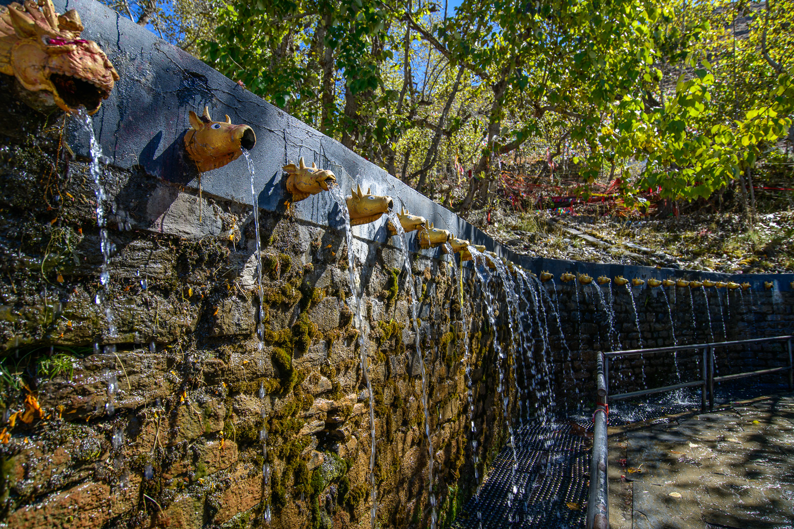 Für den Evapalinos-Tunnel mussten wir uns mit Haarnetz und Helm bestücken. Was sich als sehr weise entpuppte. War es doch eng und sehr niedrig und mancher sich den Kopf anschlug. Mit nur Hammer und Meisel wurde der Tunnel bearbeitet. Ein besonders kluges Wasserleitungssystem von 1036 m lang und grossem Gefälle entstand. Als es fertig war, versiegte die Quelle. Es dauerte 10 Jahre um ein neues herzustellen. |