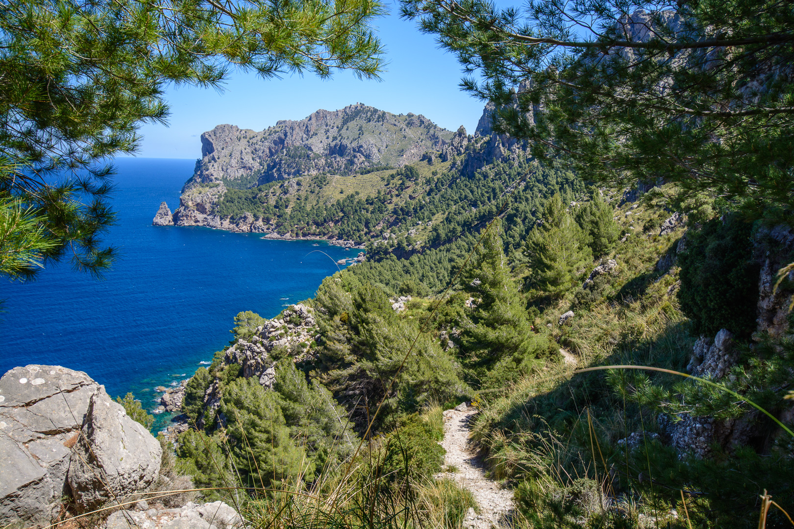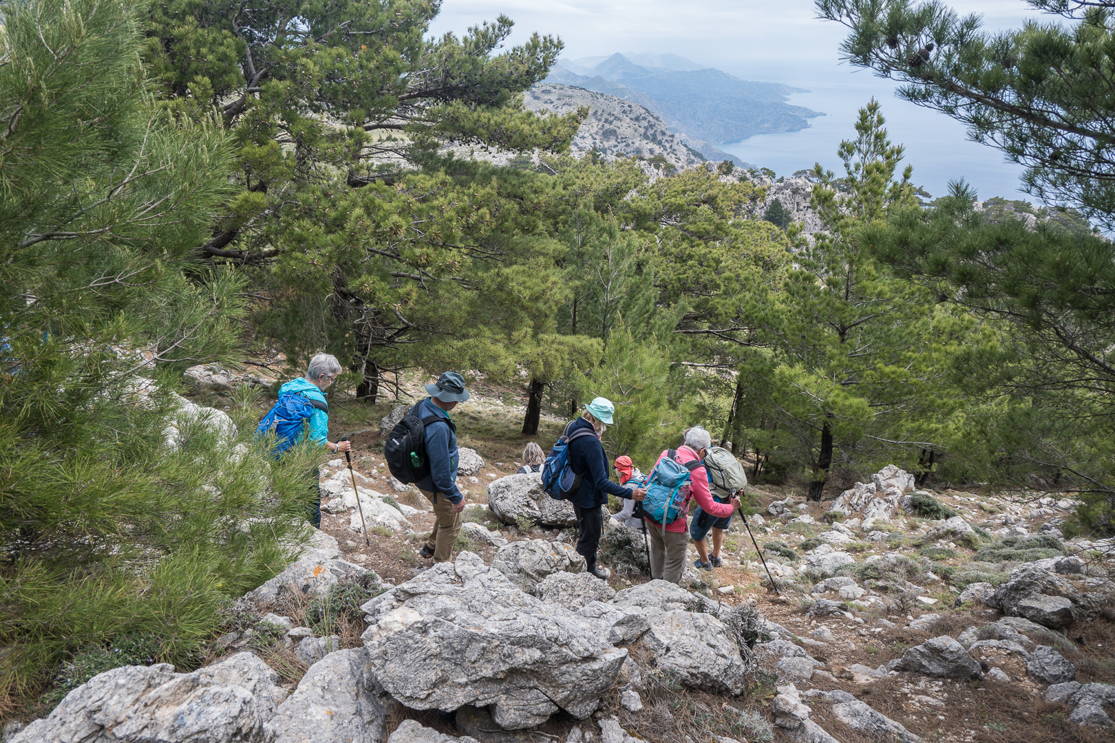 Der Weg steigt angenehm an, erst durch die alten Häuser und bald ins Grüne. Die Bäume sind oft schräg gewachsen und ihre Kronen lassen Licht durch für Gräser und Blumen am Waldboden. Die erste Kuppe (ca.220m ü.M.) ist bald erreicht. |