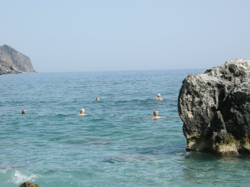 Nun kann es weitergehen zu den Thermalquellen von Benja am linken Flussufer, von denen wir eines von drei Becken auf der Anfahrt schon sehen. Dort wartet das Picknick auf uns bevor wir uns in die einfachen, ungeschützten Überlaufbecken und mit immer wieder nachlaufendem ca. 30 Grad warmem Wasser, hineingleiten lassen. Den Quellen wird heilende Kraft zugesprochen bei Magen-, Rheuma- oder Hautproblemen. Natürlich sind wir an Leib und Seele gesundet dem Jungbrunnen entstiegen. Schon die Römer kannten die Quellen mit dem wohltuenden Schwefelwasserstoff, Calcium, Natrium, den Hydrogencarbonaten etc. |