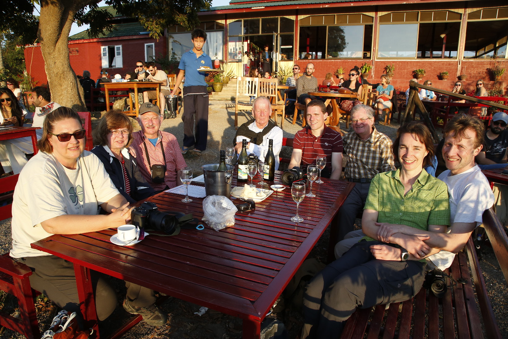 Auf dem Fussweg von der Unterkunft zum Restaurant bestaunen wir einen Hahn und vier Hühner, die in einer Baumscheibe mitten entlang der Verkehrsstrasse baden, scharren, sich aufplustern, im Sand und Geröll picken. Wie müssen sie auf ihrem kleinen Plätzchen glücklich sein im Vergleich zu unseren eingepferchten Exemplaren, die weder picken noch scharren können. Damit ist ein erlebnisreicher Tag mit spektakulären Aus- und Einblicken zu Ende gegangen. Danke, lieber Adrian, dass Du uns diese Reise ermöglicht hast und danke, liebe Teilnehmer für Eure Kameradschaft und sehr angenehme Geselligkeit. Brigitte |
