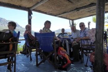 Nach einem langen und guten Mittagessen auf der Sonnenterrasse über der Vjosa bringt uns der Minibus in gut einer Stunde zum nächsten Etappenziel, Gjirokastra. Dort bringen wir unser Gepäck ins Hotel Kastro, in dem wir als fast die einzigen Gäste sehr freundlich empfangen werden. Zum Abendessen gehen wir in ein paar Minuten hinauf zum Restaurant Kodra, mit Aussicht auf die Burg. Uli |