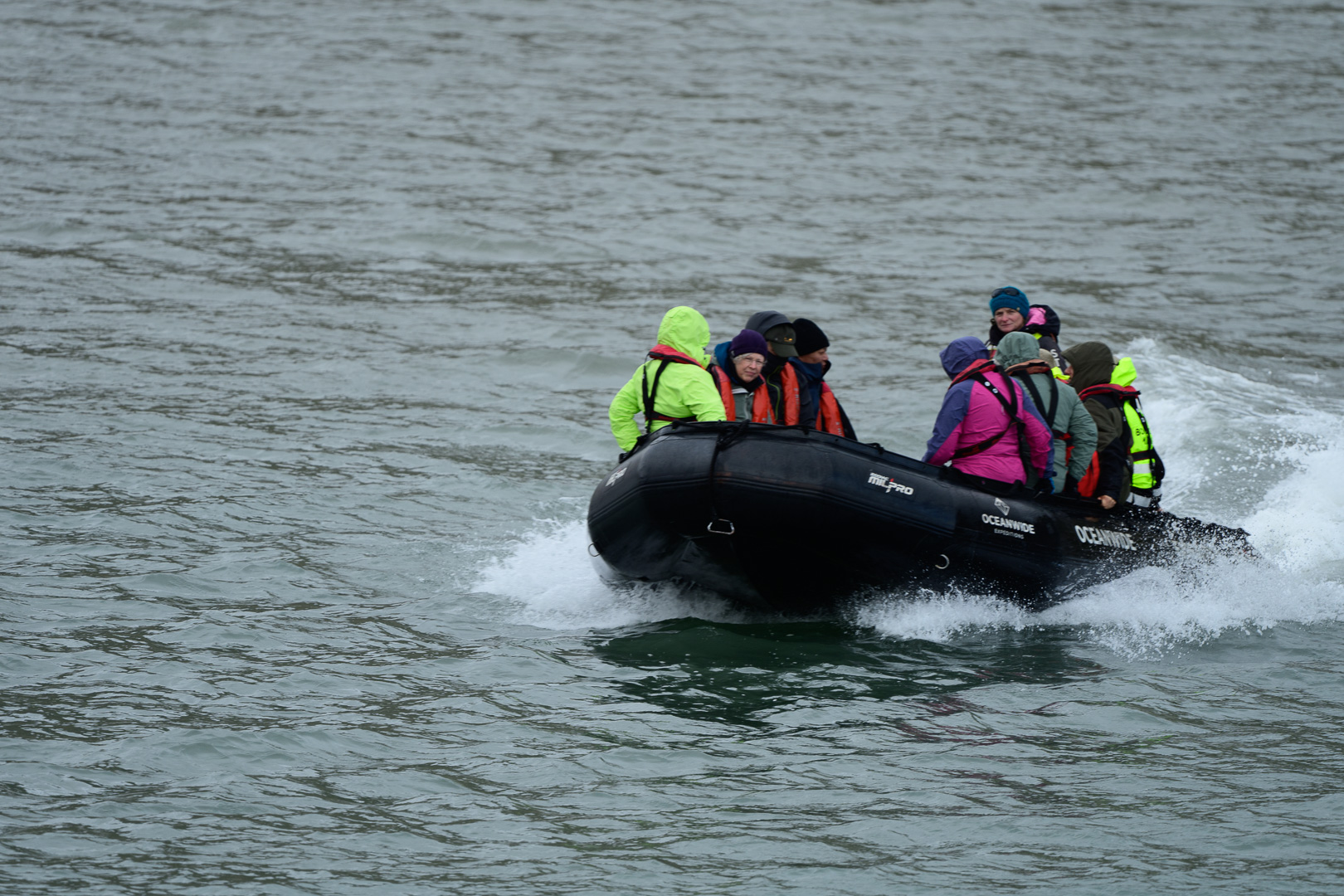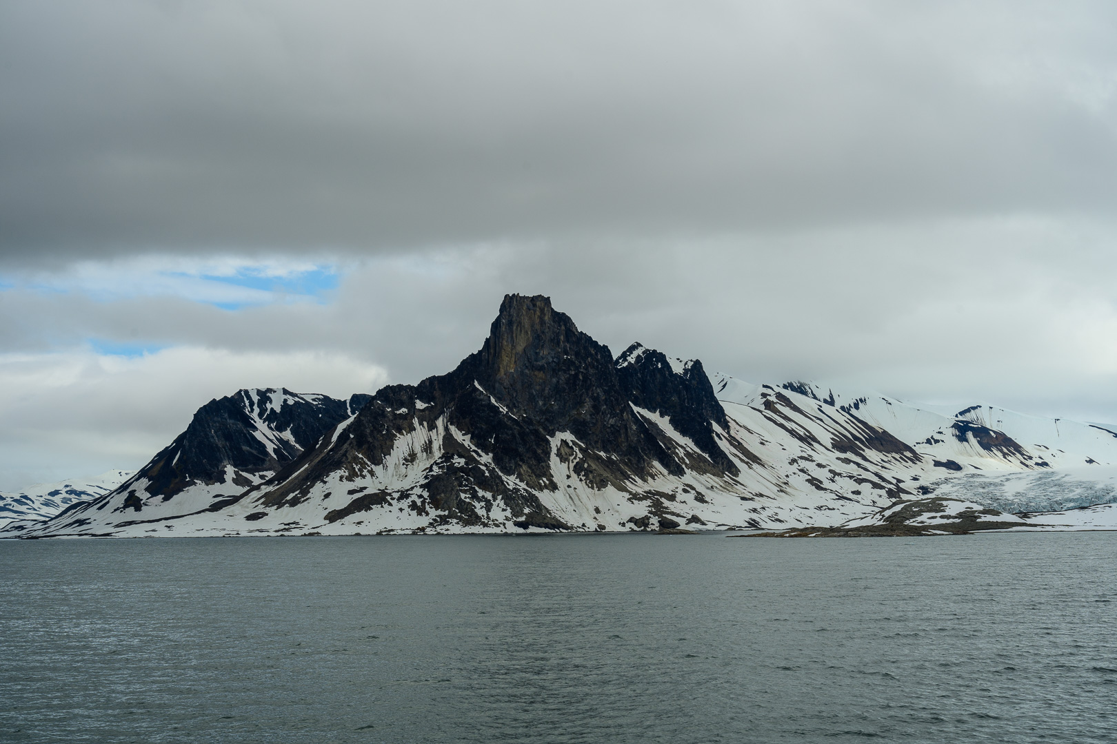 At 15:30, we landed at Treskelen, a small spit on the opposite side of Hornsund fjord. We came ashore on a pebbled beach with snow-covered ground just above it. The long hikers explored the spit for a view from its tip, while the medium hikers were lucky enough to spot lakes with red-throated divers. The leisure group got down on all fours to examine lichen, plants, and fossils in detail.