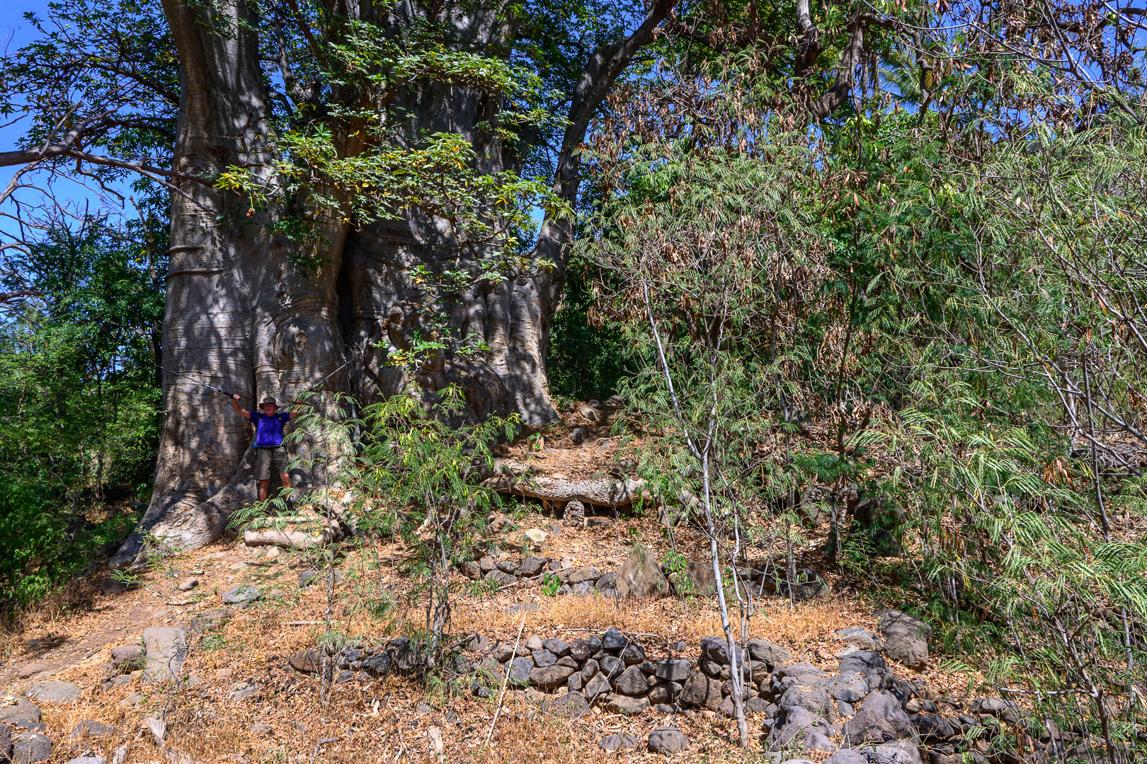 The walk down a small gorge was scenic and interesting, a bit like the lower part of some gorges in Crete. By a small artificial pond there were dragonflies and a species of kingfisher that I have seen before in the tropics. The main attraction was a huge baobab tree which l could just get in a photograph with my super wide-angle lens. The baobab tree has a huge bulbous shaped trunk which contains water if you are an elephant. We finished with a brief viewing of the old settlement of Cidade Velha where a pillory from the slaving times is preserved as a monument. Nearby we had a drink overlooking the sea.