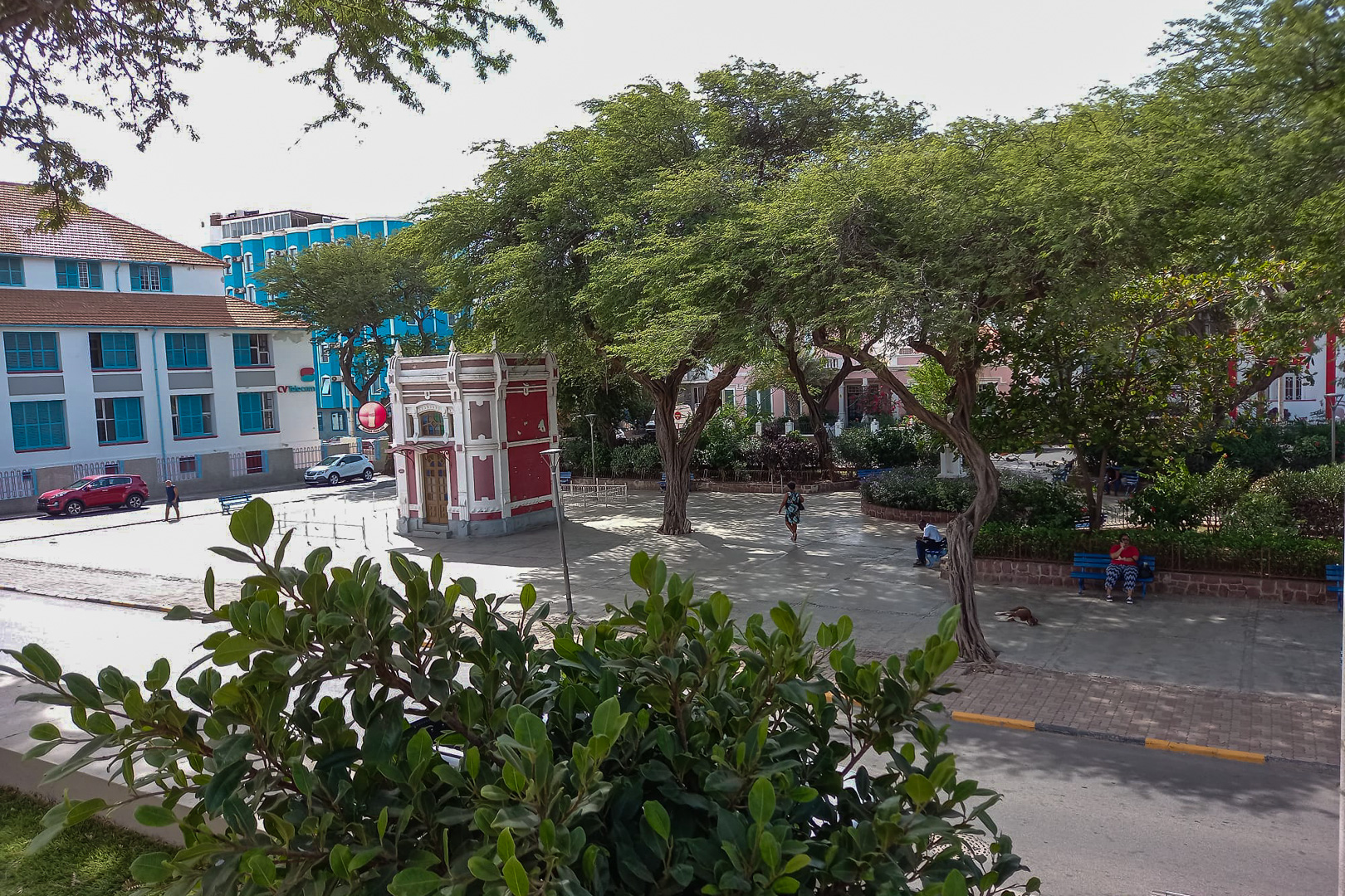 Early in the morning we started the drive back to Porto Novo on the South coast, first along the familiar route to Ribeira Grande and Paul, but then on a newly constructed road close to the coast across the desert like Southern part of the island. There was no comparison with the scenic mountain route of the outward journey. The return ferry ride to Mindelo on Sao Vicente, was fine being much less crowded than last time, perhaps because it was not at the weekend. We soon arrived again at the Hotel Oásis Atlantico Porto Grande where we had some free time. I walked a little just around the hotel and town, buying something for my lunch on the balcony, only some small fish cakes since I was looking forward to the farewell dinner with live music, Mindelo being known for music. That was OK but not really special and the live music was only one girl singing. One of the group is giving the tip to the guide, opposite to me in the photo.
