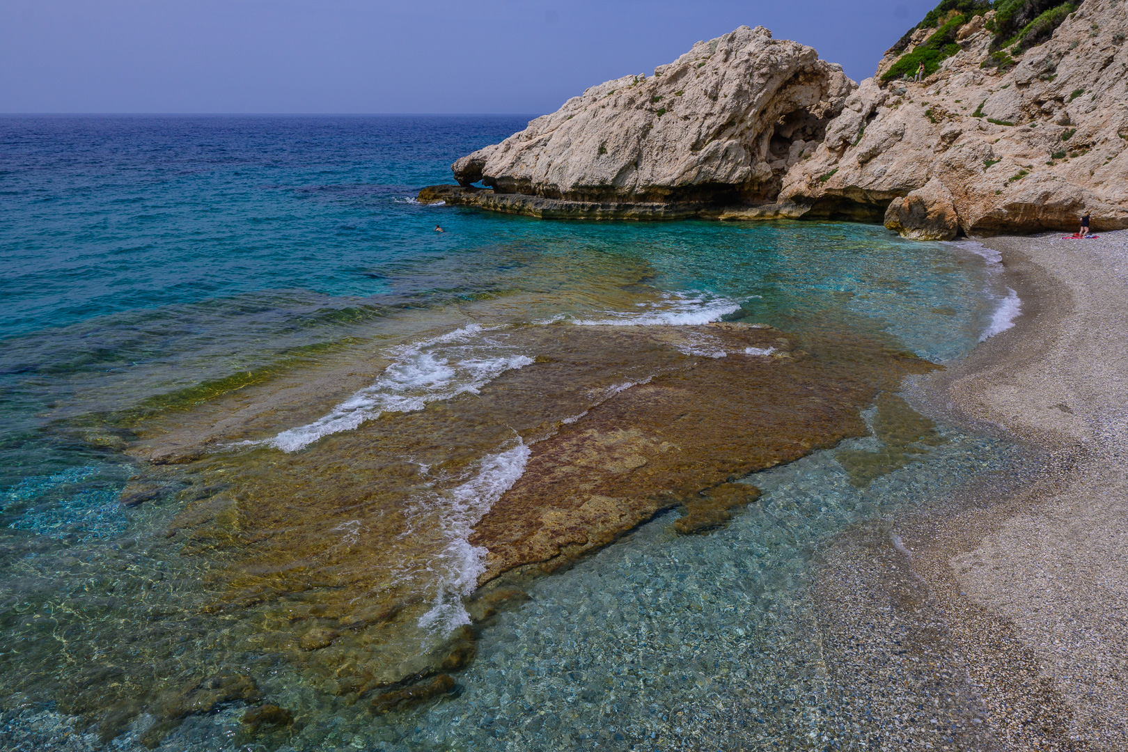 image005_r35image007_r35image009_r35Eindrucksvolle Gebirgs-massive mit mächtigen Porhyrergüssen, viele Höhlen und Grotten, wobei eine genau die Form der Insel Korsika hat, glitten an uns vorbei. Nach 2 Std. Fahrt durch fjordartige Buchten mit glasklarem Wasser legten wir im Hafen von Girolata an. Dort zerteilte sich die Gruppe. Einige zog es sofort an den Strand, andere tranken erst etwas, und noch andere sorgten erst einmal für das leibliche Wohl. Zu Viert sassen wir im obersten Restaurant und liessen es uns gut gehen. Aber dann musste doch der 1-stündige Marsch zur Badebucht in Angriff genommen werden. Das Ziel Cala di Tuara war schon lange sichtbar und endlich konnten auch wir uns im Meer abkühlen. Nach 2½ Stunden Dösen und Schwimmen ging’s aber schon wieder weiter.