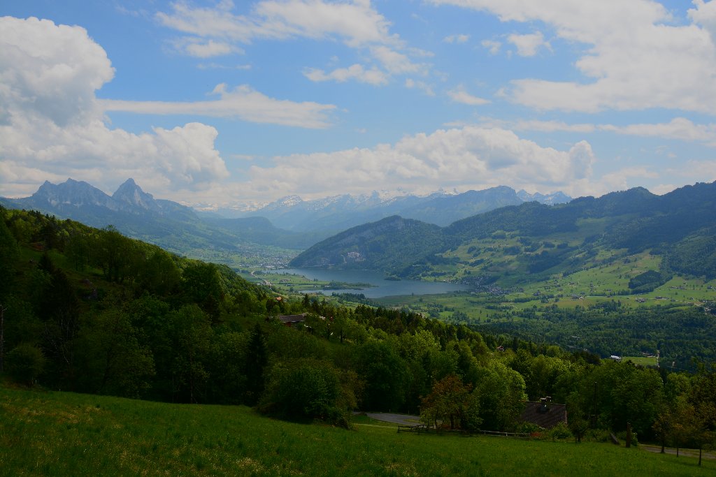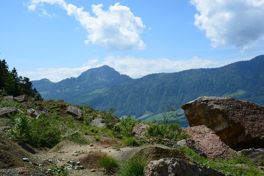 Von der Lichtung aus hat man eine Blick auf die Rigikette.