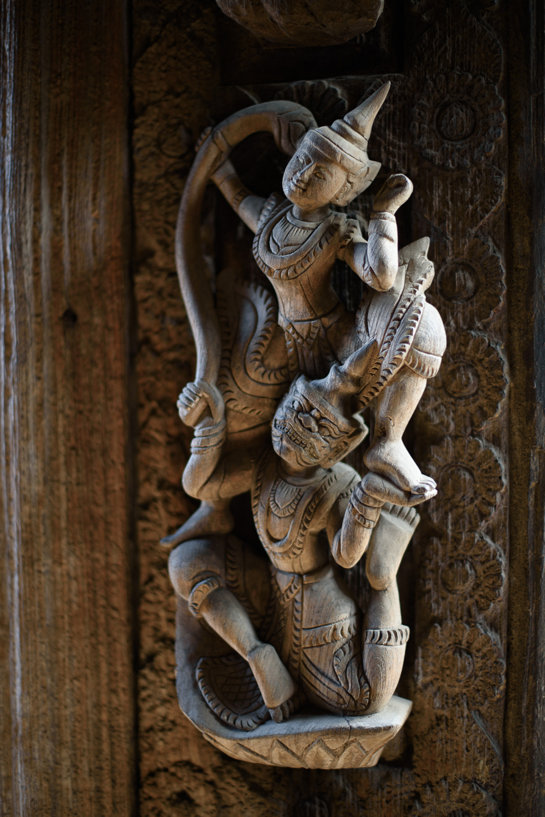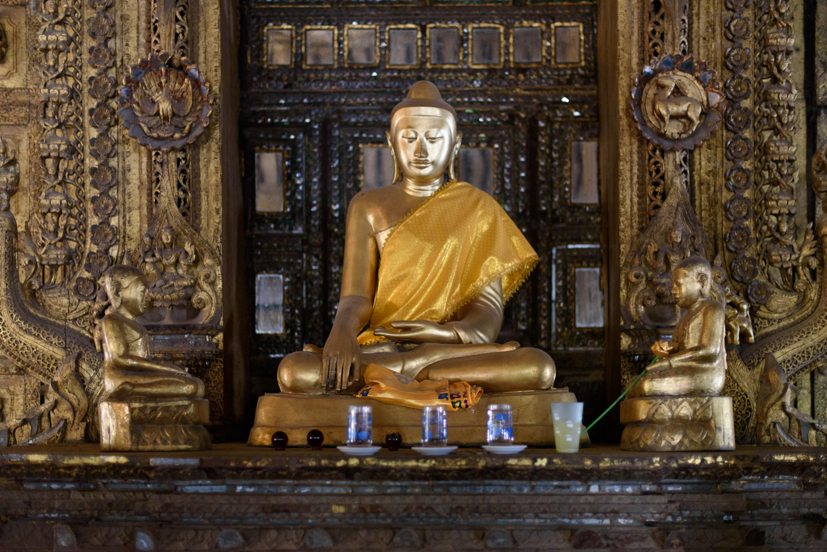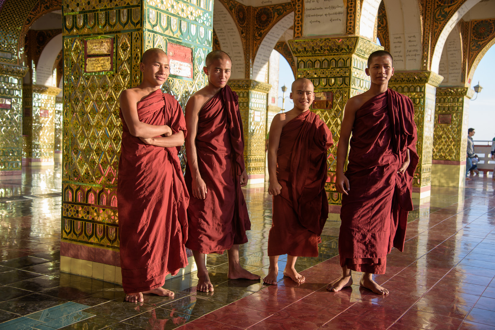 The first was at the edge of a huge area which had been a royal palace. The monastery is a masterpiece of traditional Myanmar woodcarving techniques and architecture. It gives an idea of the previous splendor of the King Mindon’s palace complex, a golden city within a city, which was however tragically destroyed by allied bombing during World War Two. An exact replica of the old palace is now being built inside the walls.