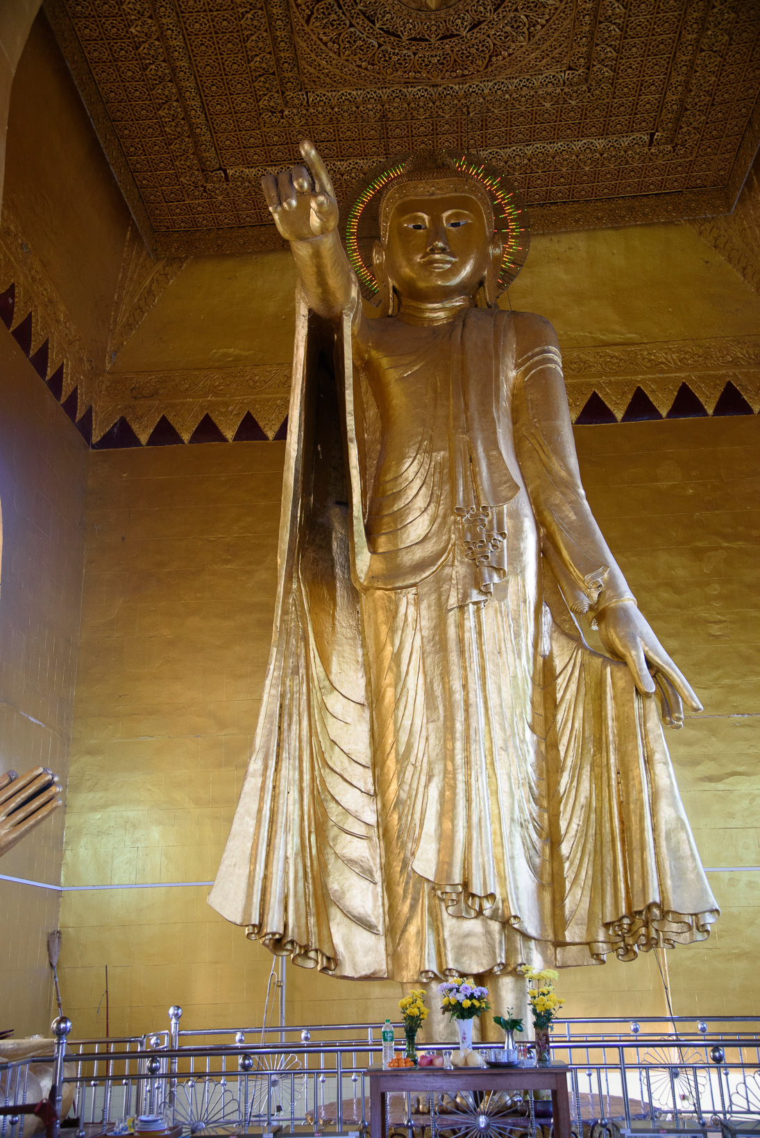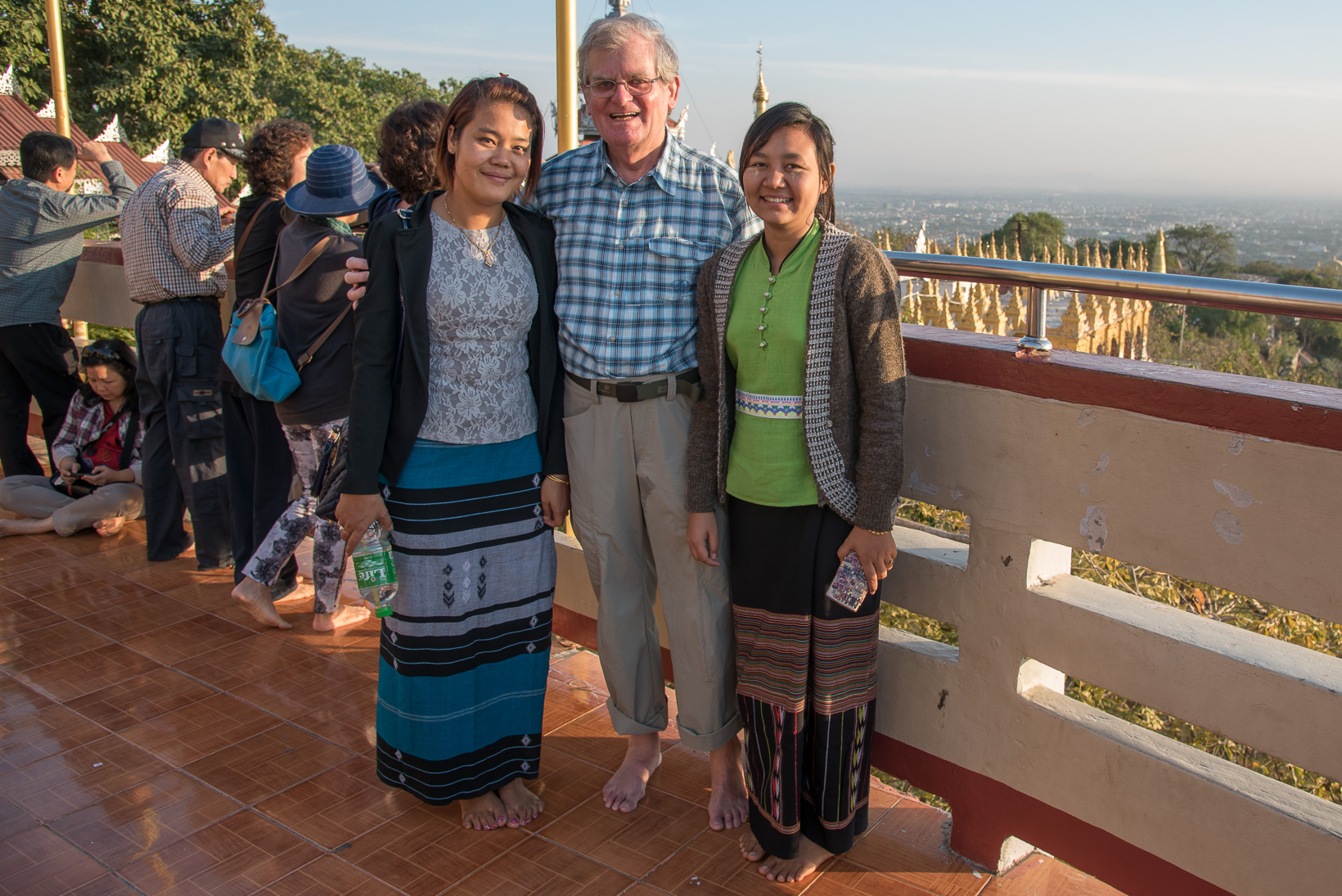 Finally we climbed the approximately one thousand steps up Mandalay Hill to have a bird’s-eye view of the city, the outlying areas of the Ayeyarwady plains and the misty Shan hills. Along the way there were colourful souvenir stalls, the Pershewar Relics, possibly the world’s only authentic bones of Buddha and the gold-plated Shweyattaw Buddha of immense size. The climb has to be done bare foot, which I do not find at all comfortable, but we could take a small pick-up truck back down, as some of the group also did going up. The pagodas are certainly impressive and the monks are friendly, holding conversations with the visitors.