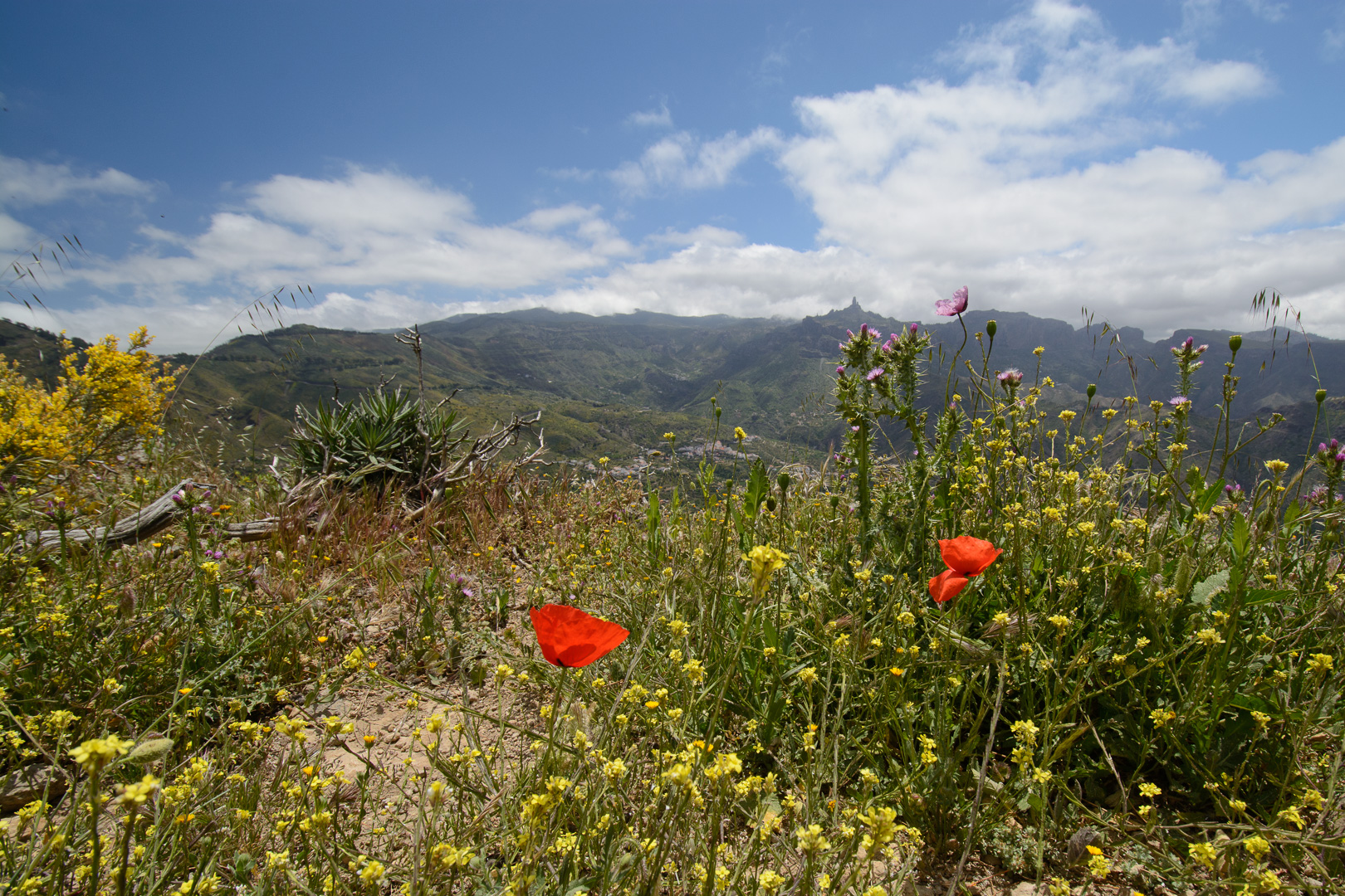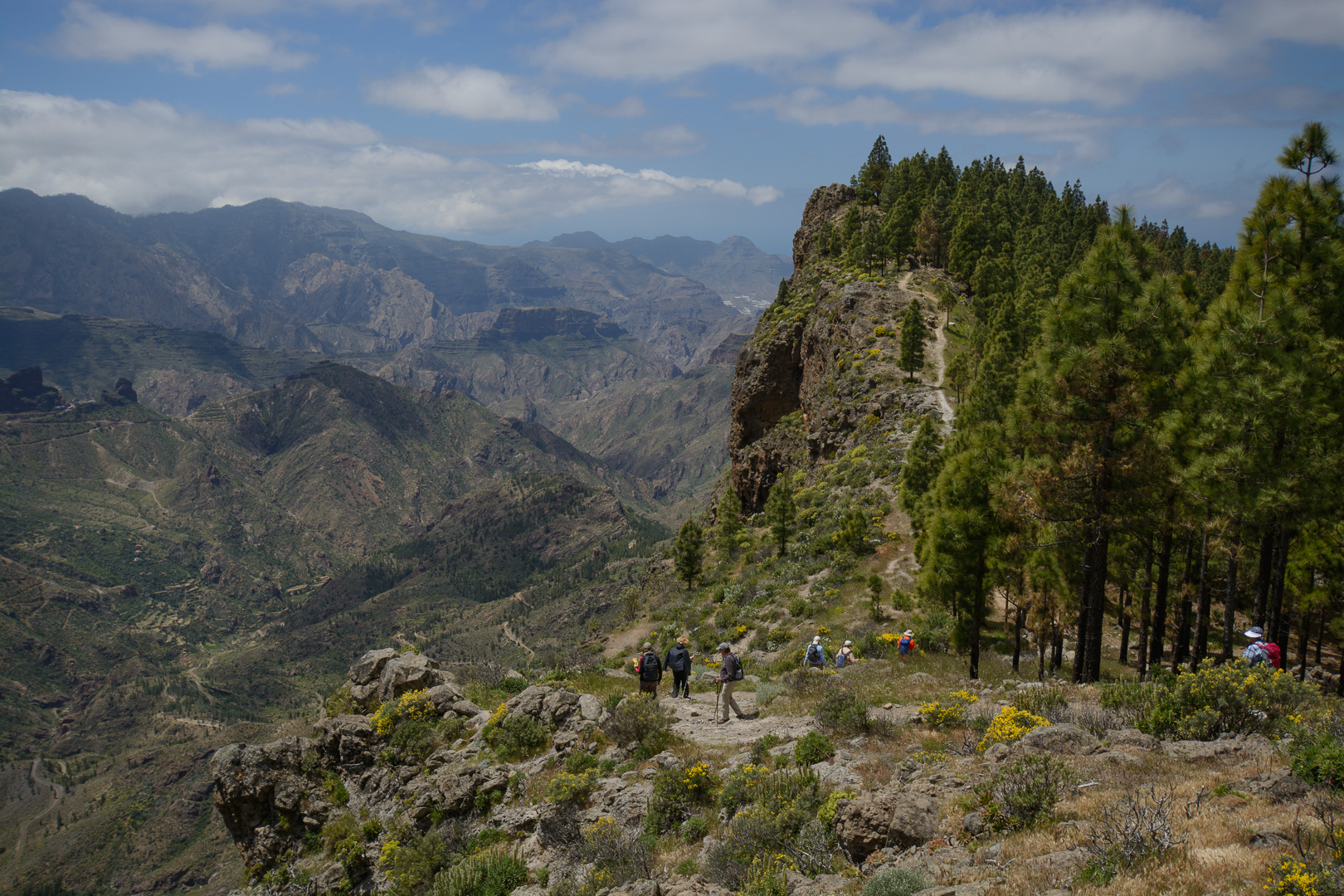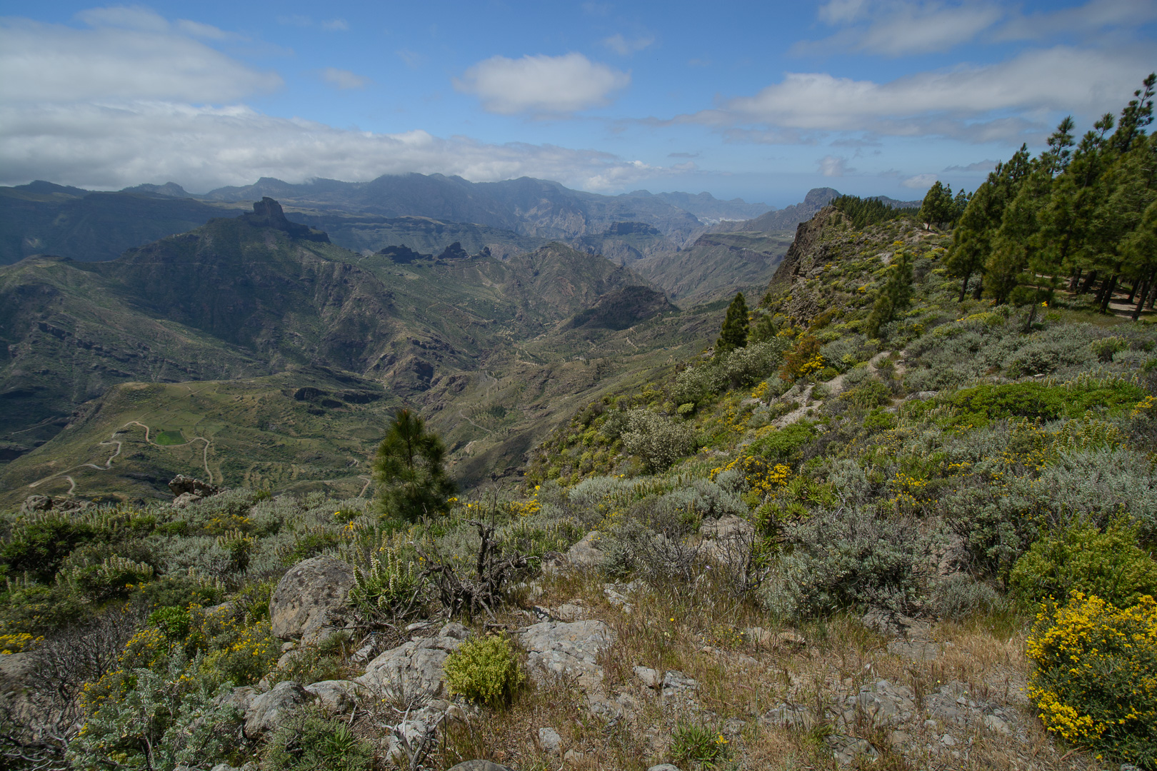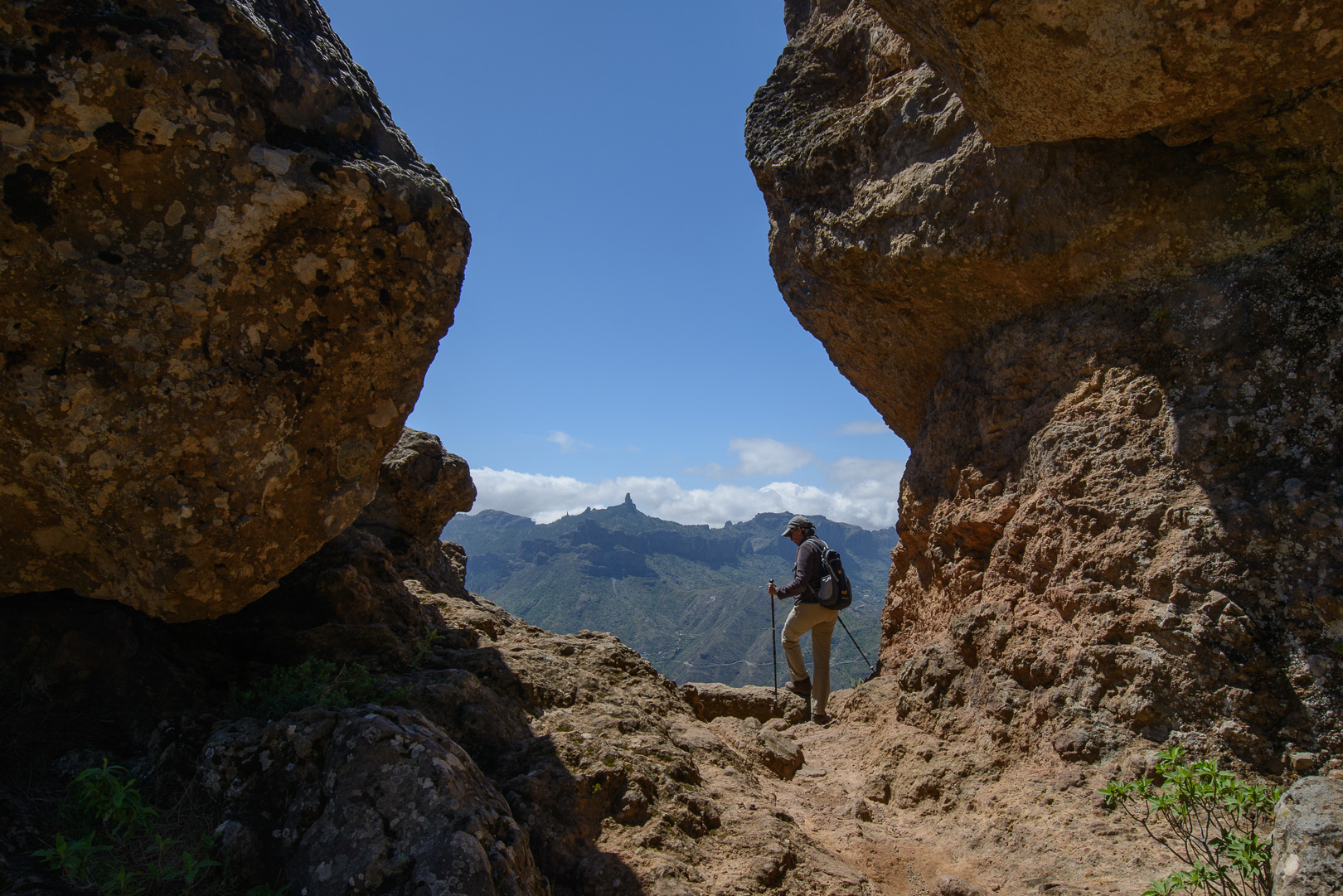 Vom alten Wegkreuz Tejeda wandern wir entlang der Wetterscheide mit grandiosen Aussichten auf das zentrale Hochgebirge der markanten Felsen Roque Nublo und Roque Bentaiga zum höchstgelegenen Höhlendorf Artenara. Wir passieren die im Felsen eingelassen Höhlen “Cuevas de Caballeros”, die eine natürliche Aussichtsterrasse und Wohnstätte der Altkanarier darstellte. Unsere Wanderung endet im abgelegenen Bergdorf Artenara und seinem Höhlenrestaurant mit einer einmaligen Aussicht auf die faszinierende Gebirgslandschaft Gran Canarias.