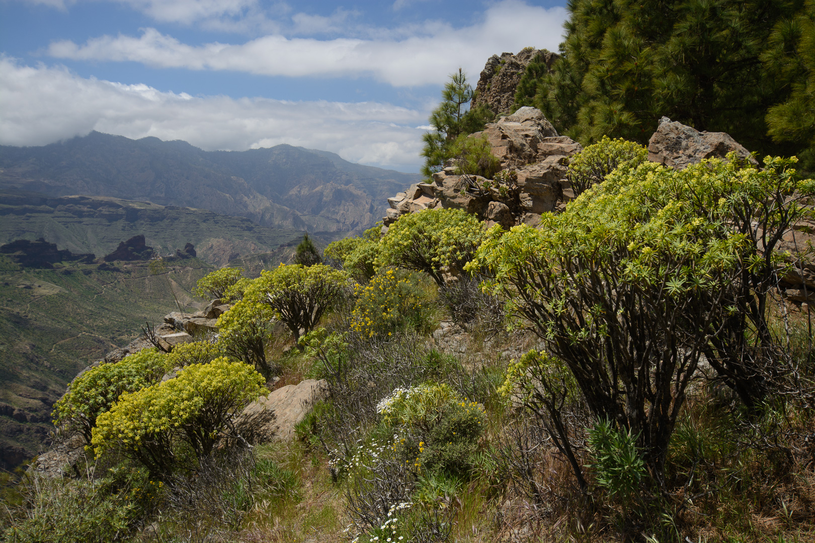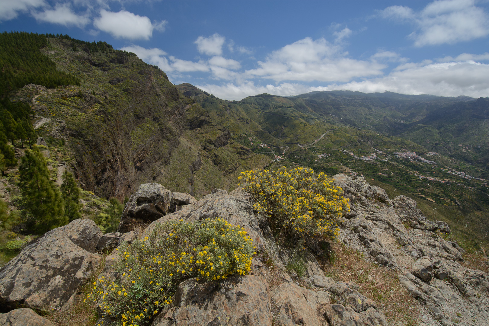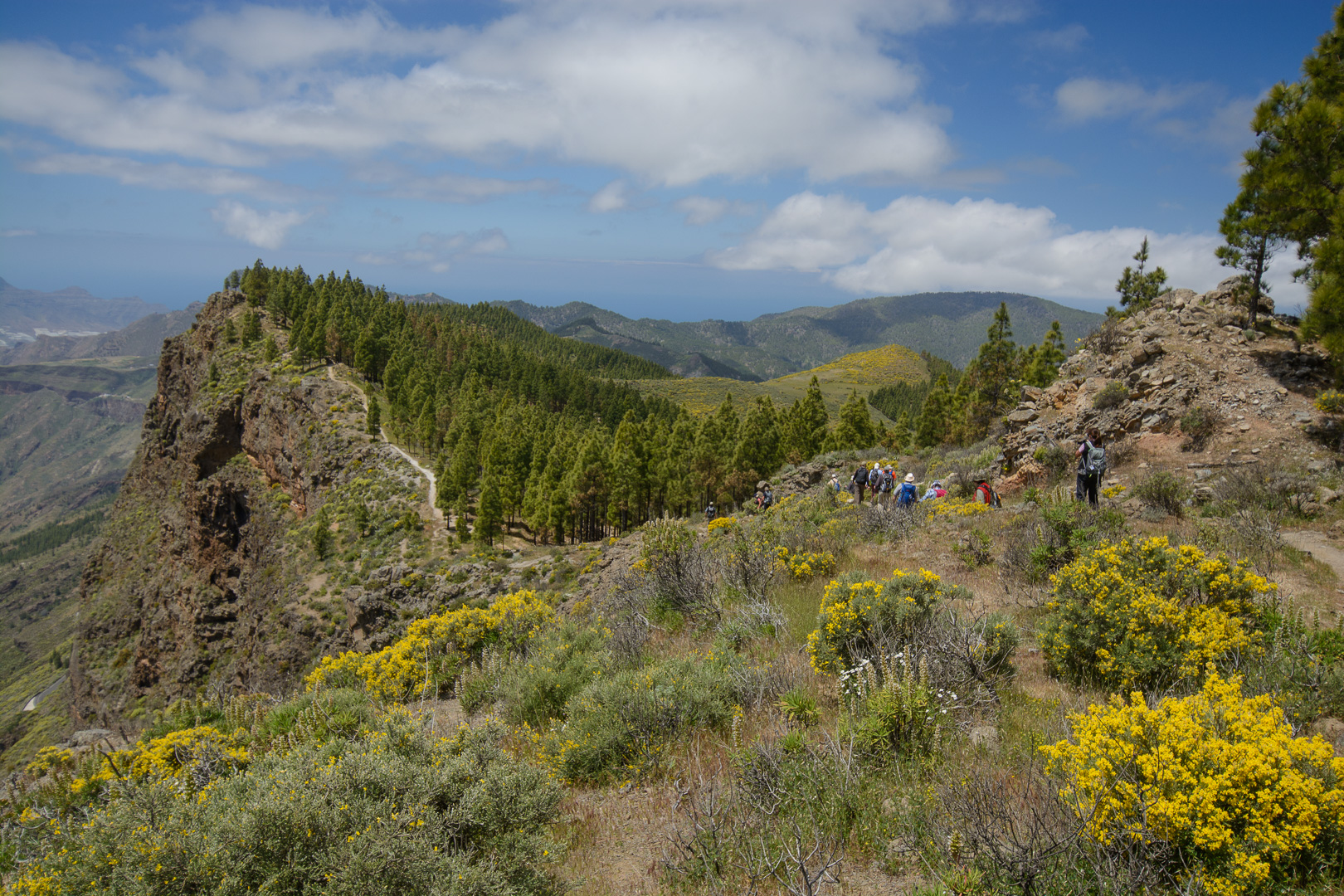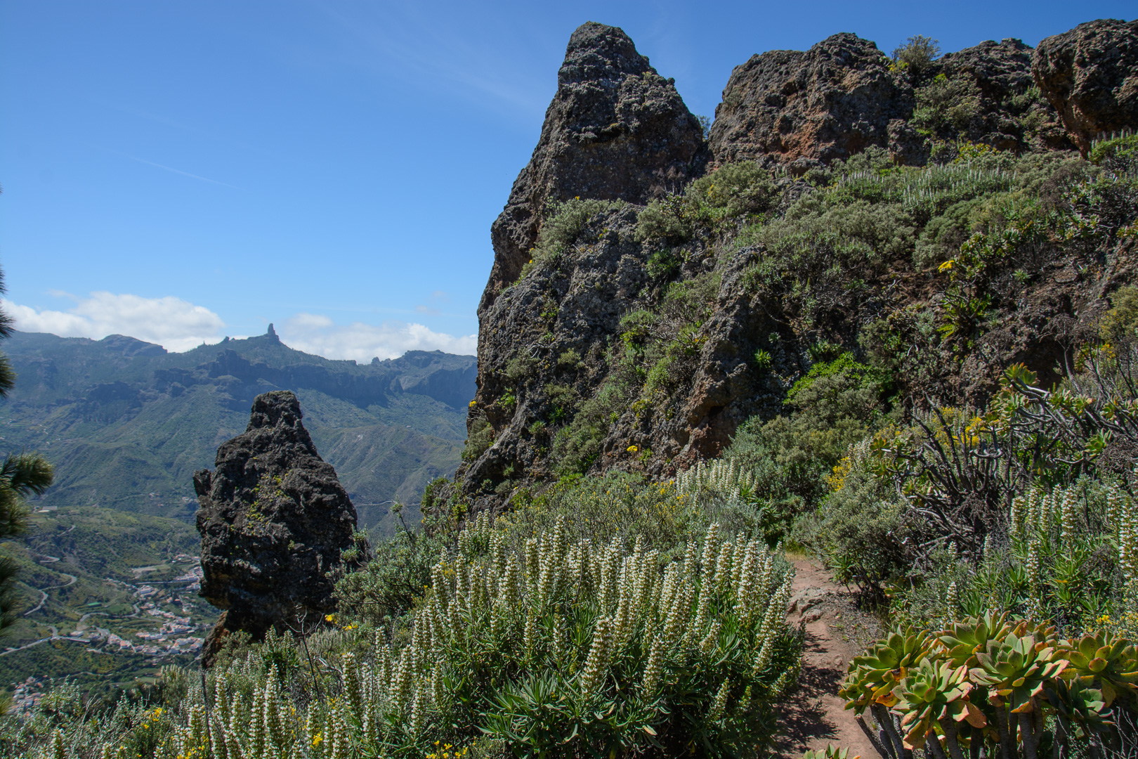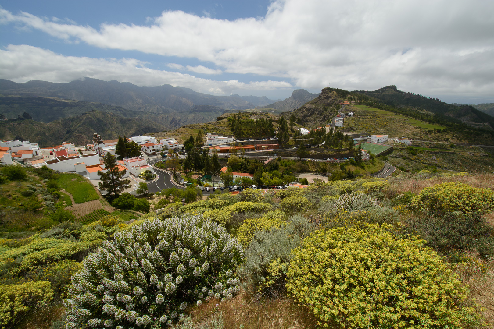 Vom alten Wegkreuz Tejeda wandern wir entlang der Wetterscheide mit grandiosen Aussichten auf das zentrale Hochgebirge der markanten Felsen Roque Nublo und Roque Bentaiga zum höchstgelegenen Höhlendorf Artenara. Wir passieren die im Felsen eingelassen Höhlen “Cuevas de Caballeros”, die eine natürliche Aussichtsterrasse und Wohnstätte der Altkanarier darstellte. Unsere Wanderung endet im abgelegenen Bergdorf Artenara und seinem Höhlenrestaurant mit einer einmaligen Aussicht auf die faszinierende Gebirgslandschaft Gran Canarias.