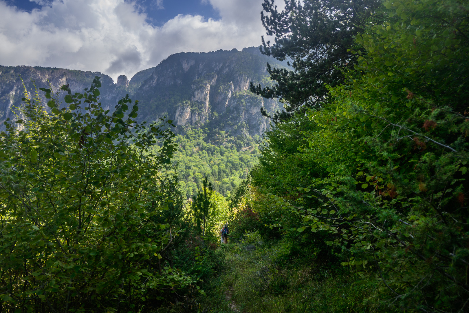 | Nach dem Eintauchen in die gute alte Zeit heisst es wieder unseren Wanderalltag aufzunehmen. Es geht kurz etwas hinauf über grüne Weiden, wo wir wie immer Schafen begegnen, die uns mit ihrem Blöcken begleiten. Die Landschaft ist wieder sehr schön, romantisch und fast parkartig. Dunkle Wolken, die nichts Gutes verheissen erscheinen über dem Coniston Water, das wir in der Ferne erblicken. Es bietet sich ein bisher unbekanntes Bild: ein roter Regenschirm erscheint, dabei nieselt es kaum! | |