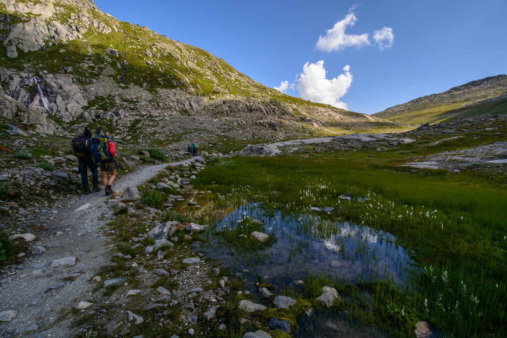 | Um 9.00 steht die Gruppe bereit zum Abmarsch vor dem Hotel. Einige studieren die Karte, andere kümmern sich um ihren Sonnenschutz – man kann ja nie wissen!Nach neun Uhr marschieren wir los über den Talgrund hinüber in Richtung Blea Tarn, den wir während des Aufstieges unterhalb des Side Pikes und dann gegen den Lingmoor Fell ständig vor Augen haben: ein Sujet, das einem immer wieder neu zum Fotografieren reizt. | |