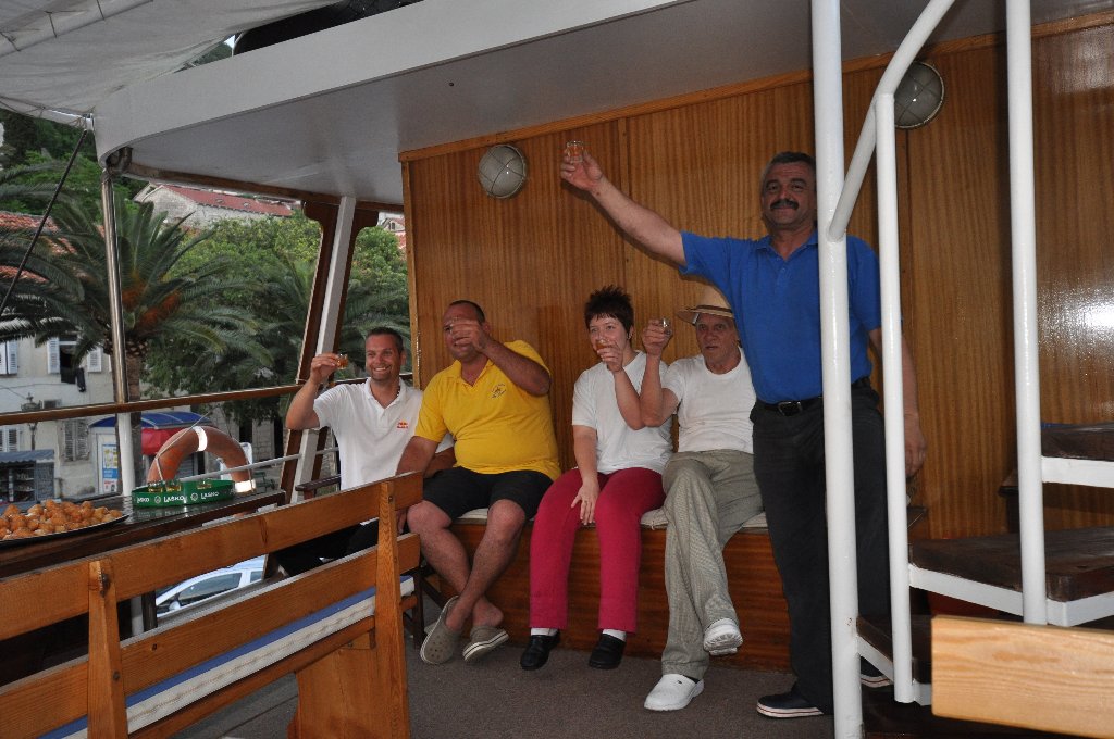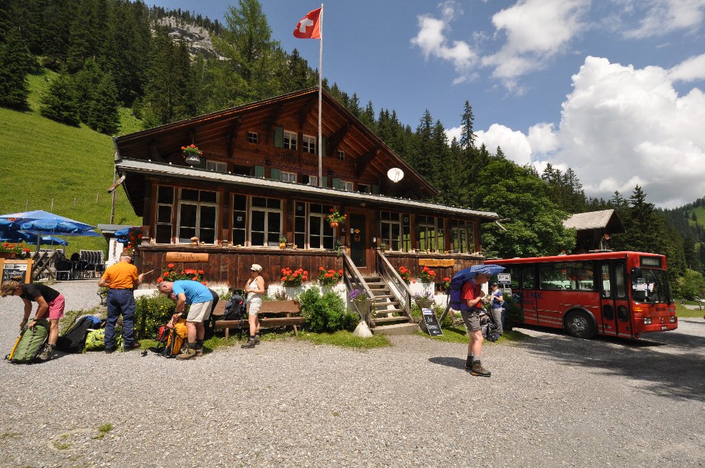 | Wenn wir wüssten, dass wir in den kommenden Wandertagen in England ohne Regenschirm auskommen würden, wir würden es kaum glauben!Als wir in Coniston ankommen, regnet es wirklich. Die meisten verschwinden sofort im bereitstehenden Bus, die andern sieht man mit Schirmen in die Black Bull Inn eilen. Auf der Rückfahrt nach Old Dungeon Ghyll nehmen wir bei der Yew Farm Vreni C. auf, die dort gewartet hat. Dann geht es über Skelwith Bridge, Elterwater, Chapel Stile ins Great Langdale zurück. Inzwischen scheint wieder die Sonne und wir geniessen einen schönen Abend beim Bier und gutem Essen.Herzliche Dank, lieber Adrian für die schöne Wanderung und die Ueberraschung.
