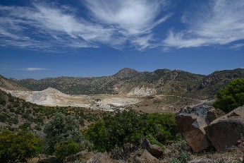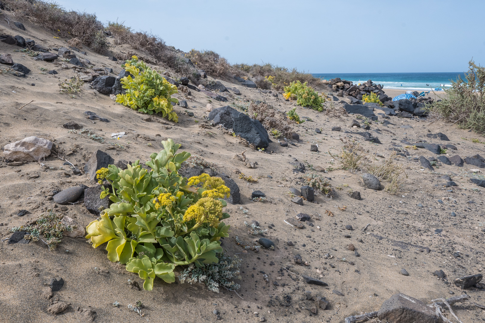 | Wir kommen allmählich ins Tal hinunter, wo es wenige einsam gelegene Farmen gibt; auch Ginstergebüsche tauchen auf, die sofort einen fotografischen Run auslösen. Inzwischen ist der Himmel schon lang nicht mehr wolkenlos, bietet aber gerade mit seinen dunklen Wolken, durch welche die Sonne scheint, einen interessanten Anblick. | |