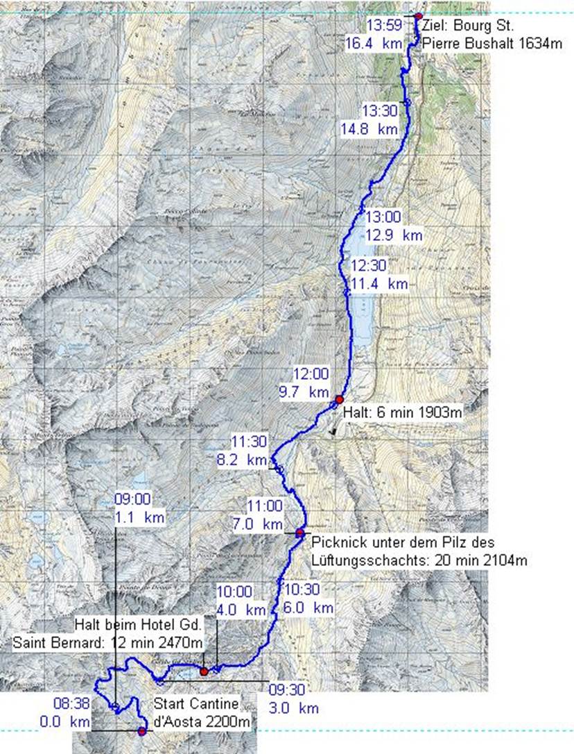 Montag, 3. August: Cantine d’Aoste ( 2203) – Gr.St.Bernhard (2469) – Bourg-St.Pierre (1632).